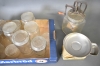 12907. Parti bla köksvåg och glasburkar, högsta höjd 35 cm