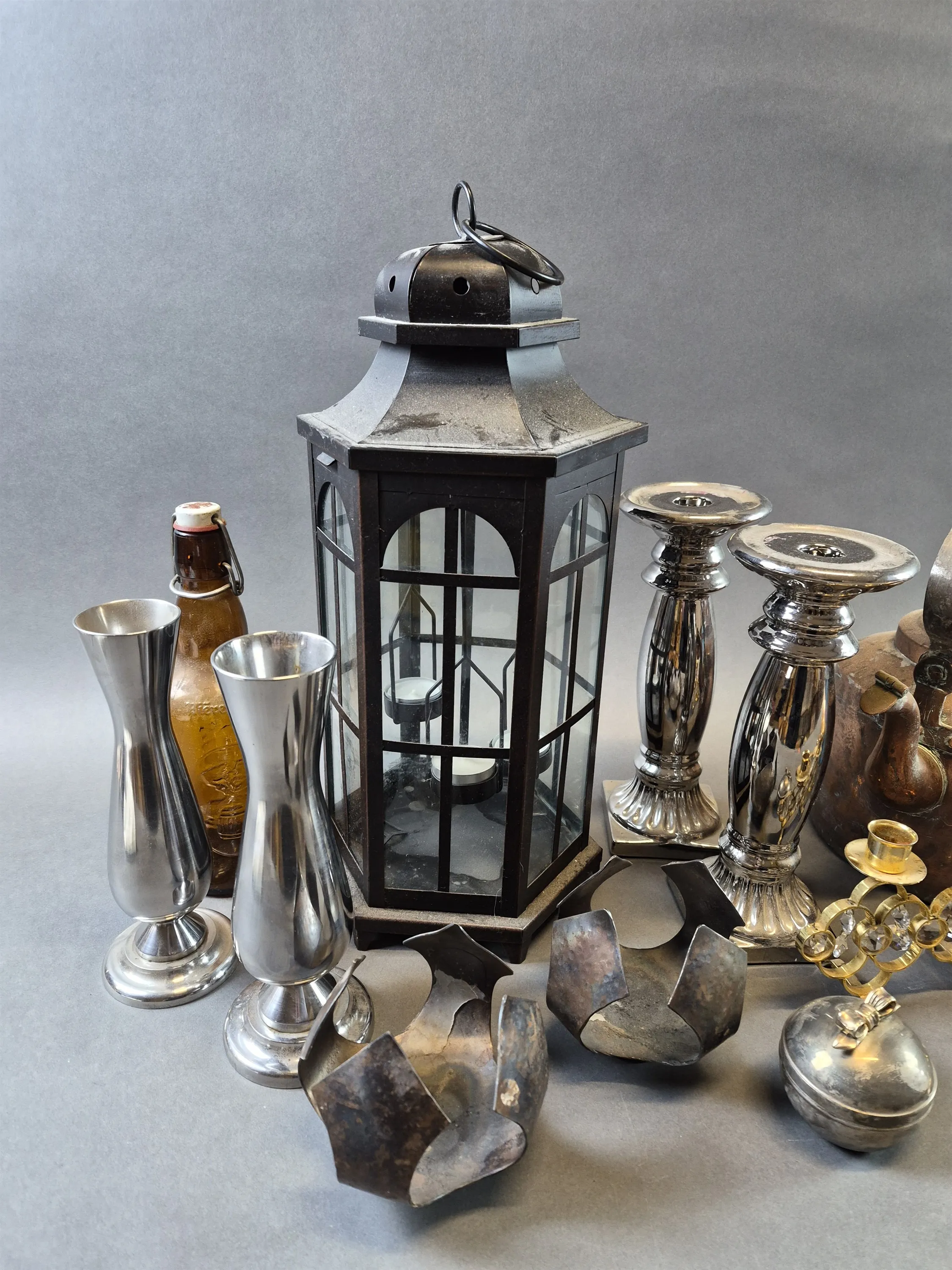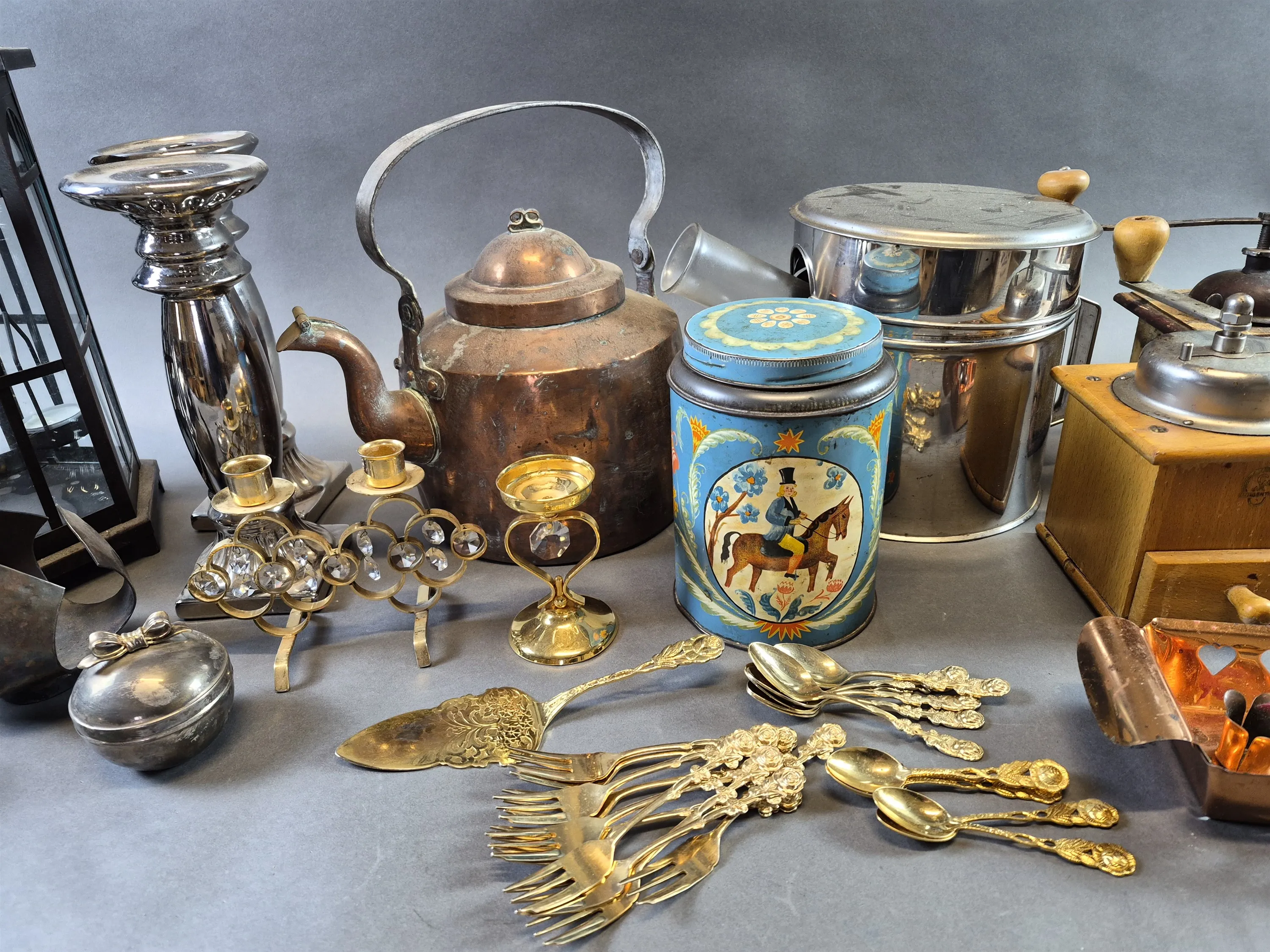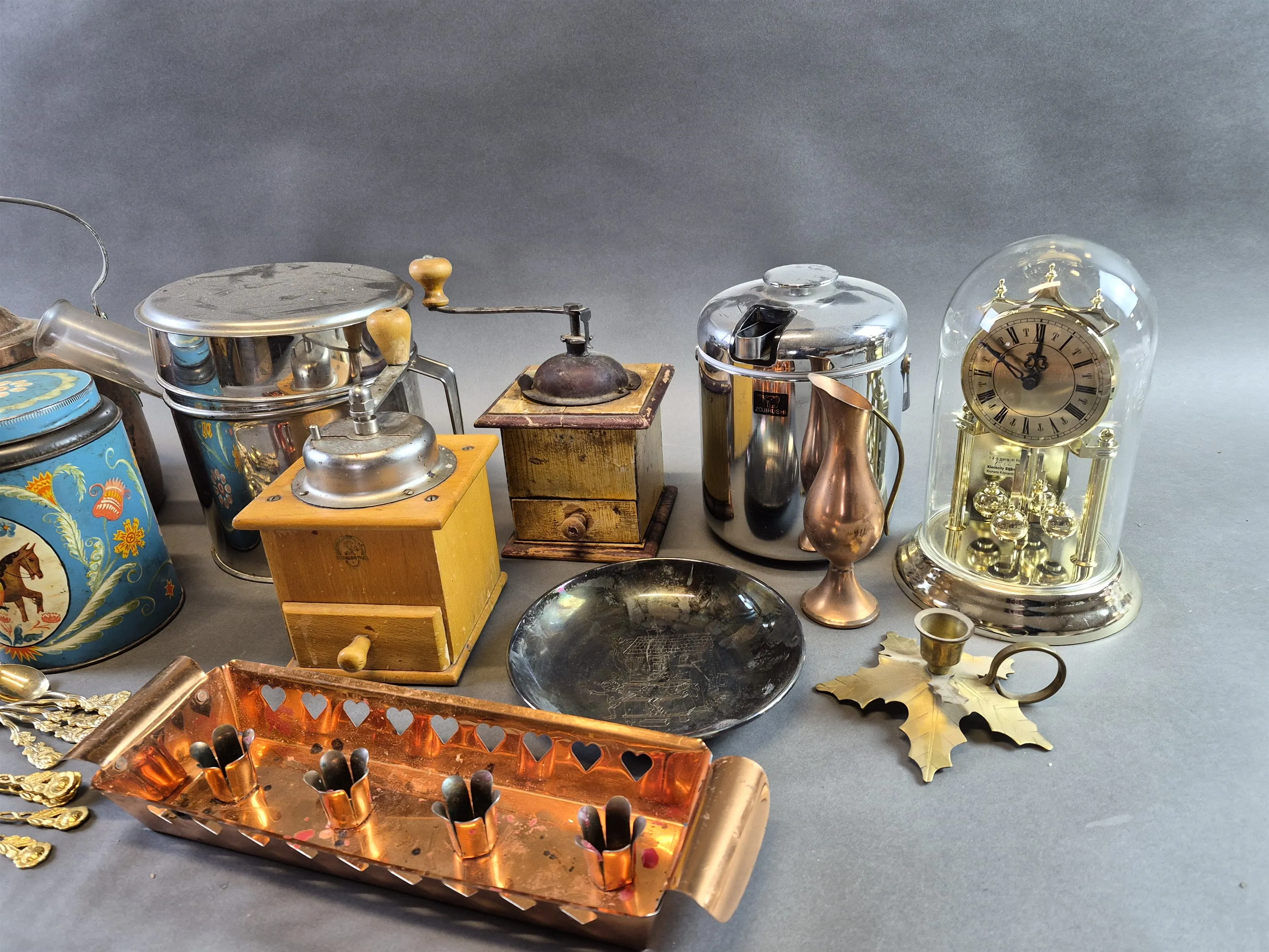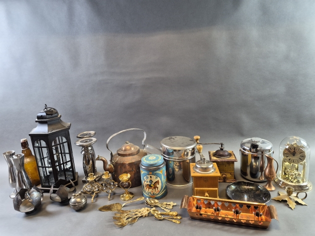 19994. Parti bla metall, kaffepumpa och kaffekvarnar, högsta höjd 45 cm