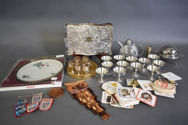 16521. Parti bla metall och drinkunderlägg, längsta mått 35 cm