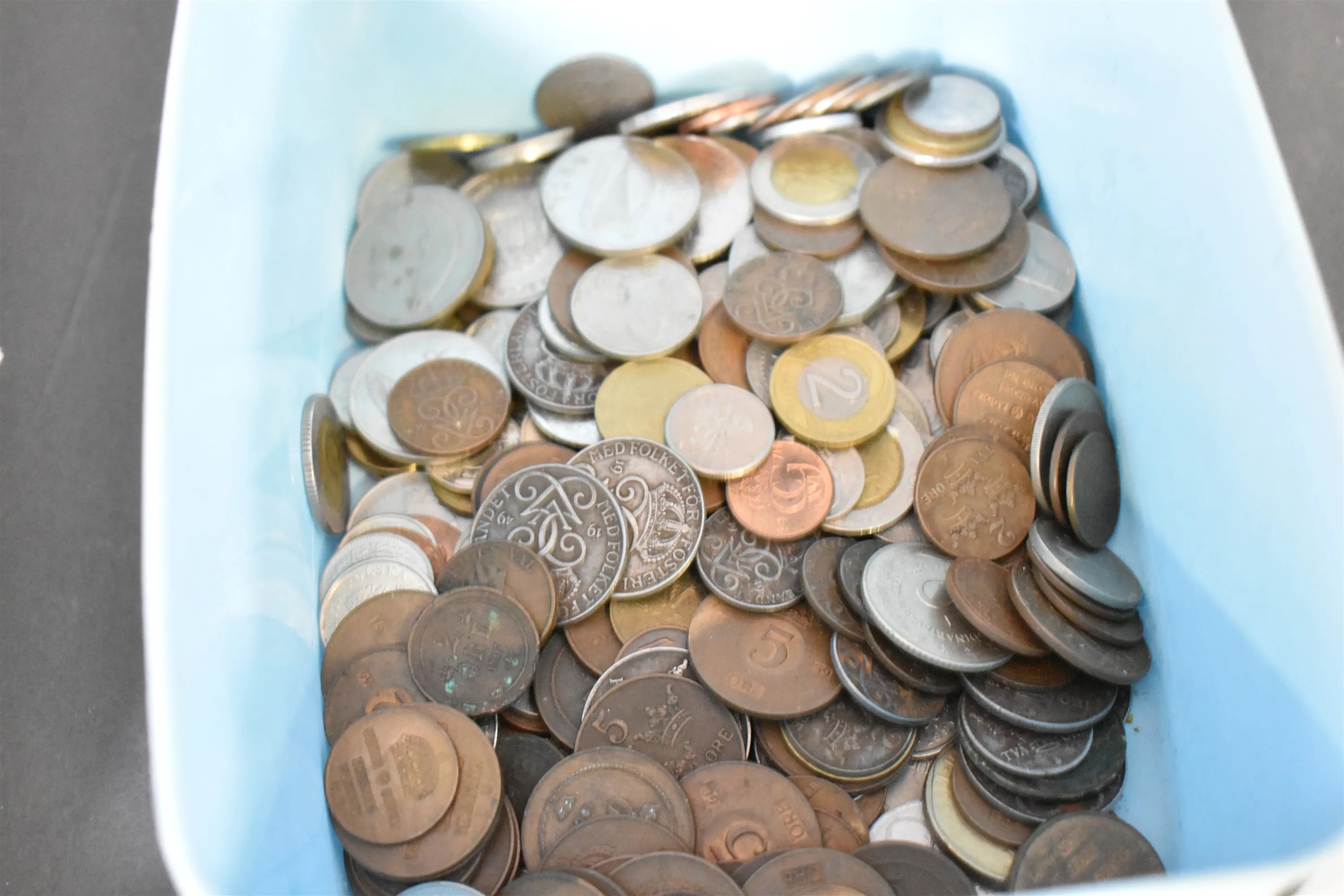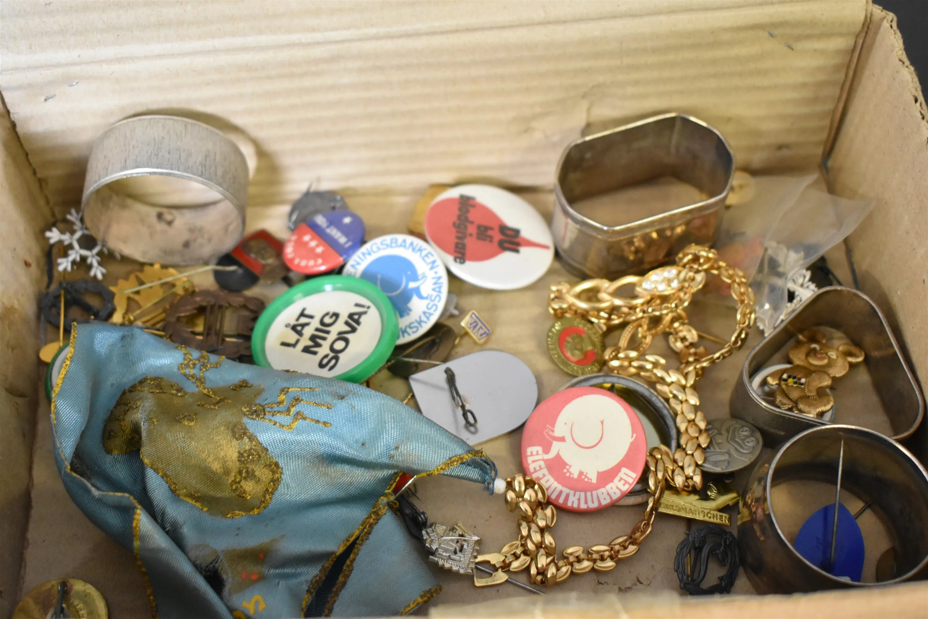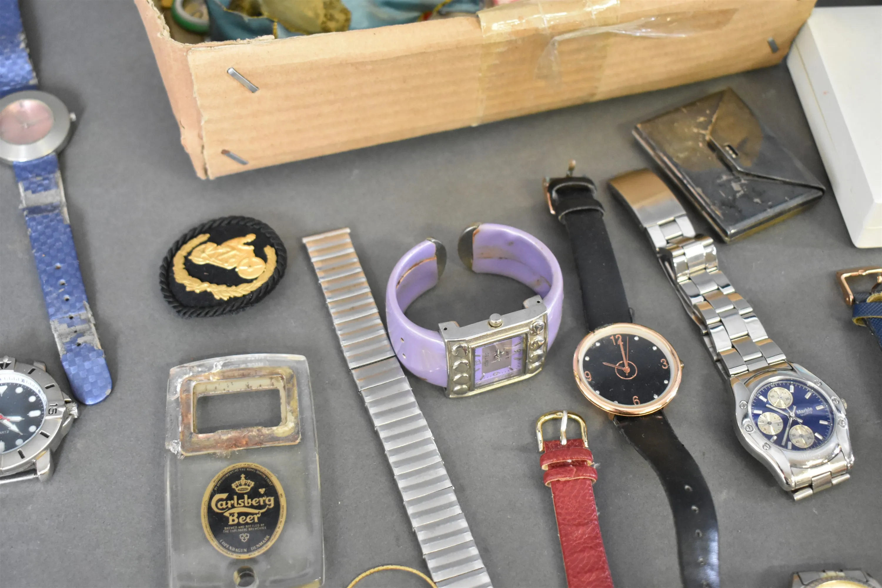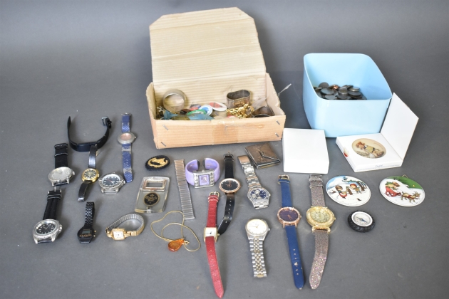 13475. Parti bla mynt, armbandsur och pins
