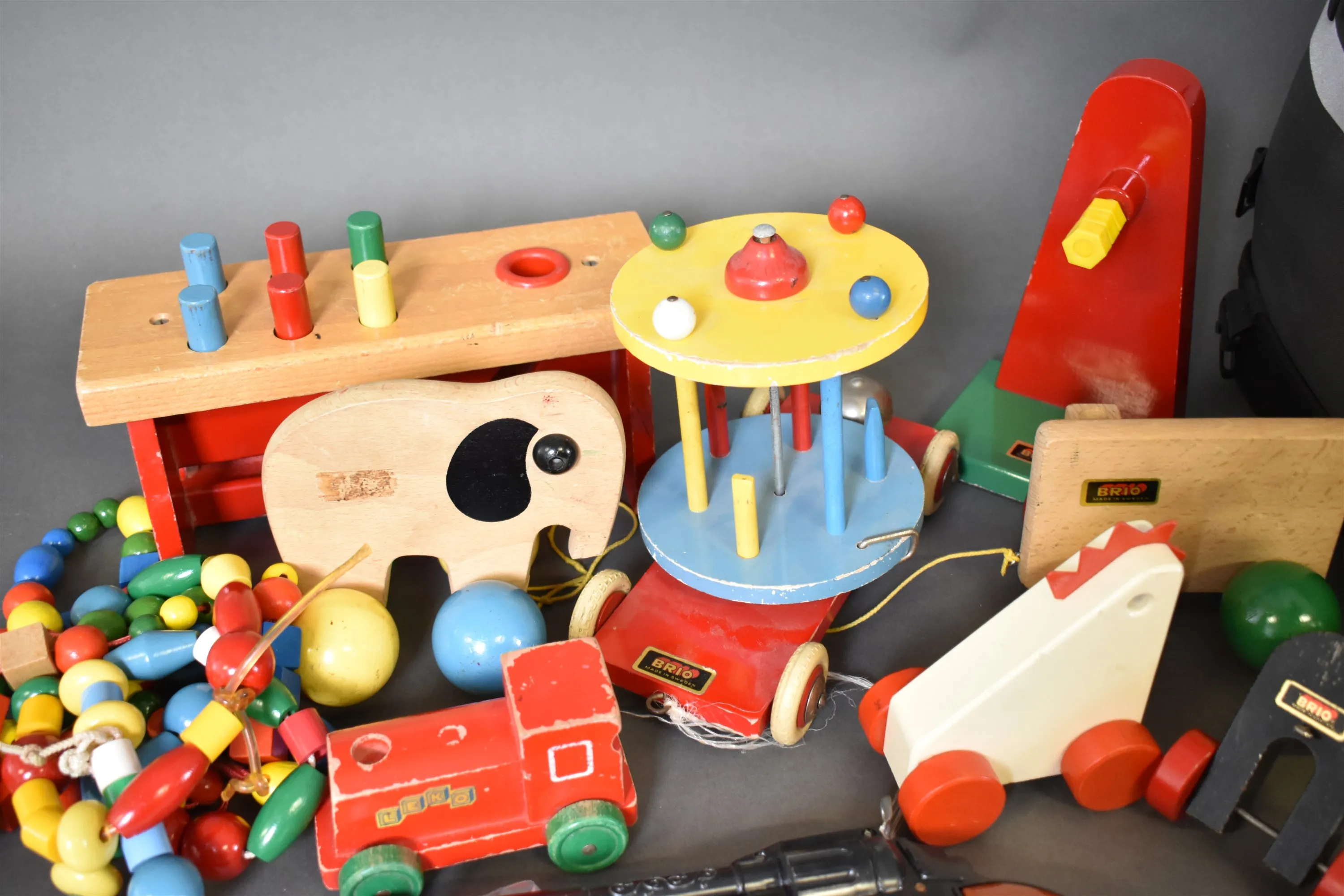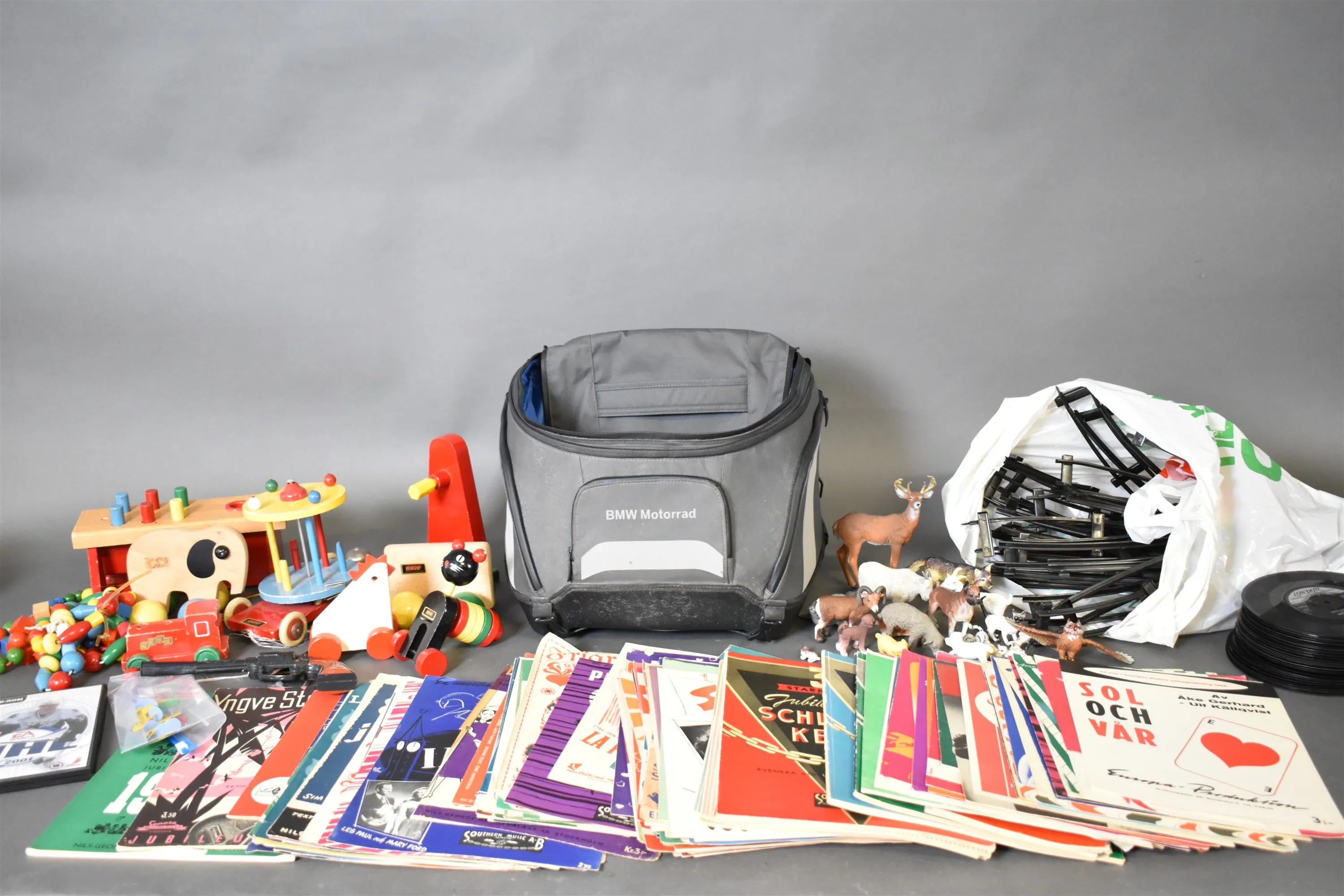 13508. Parti bla not/sånghäften, BRIO träleksaker och tågräls, högsta höjd 32 cm