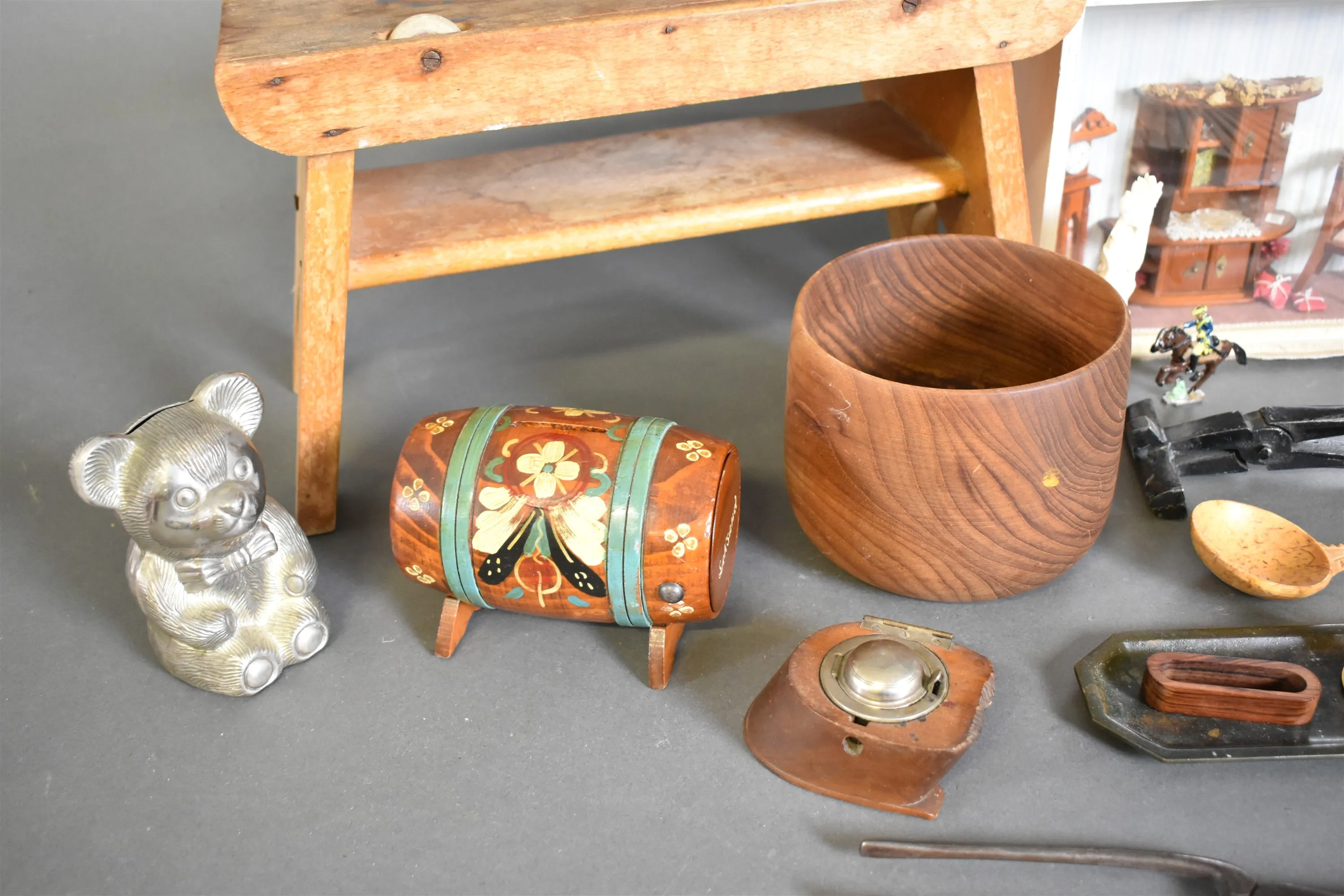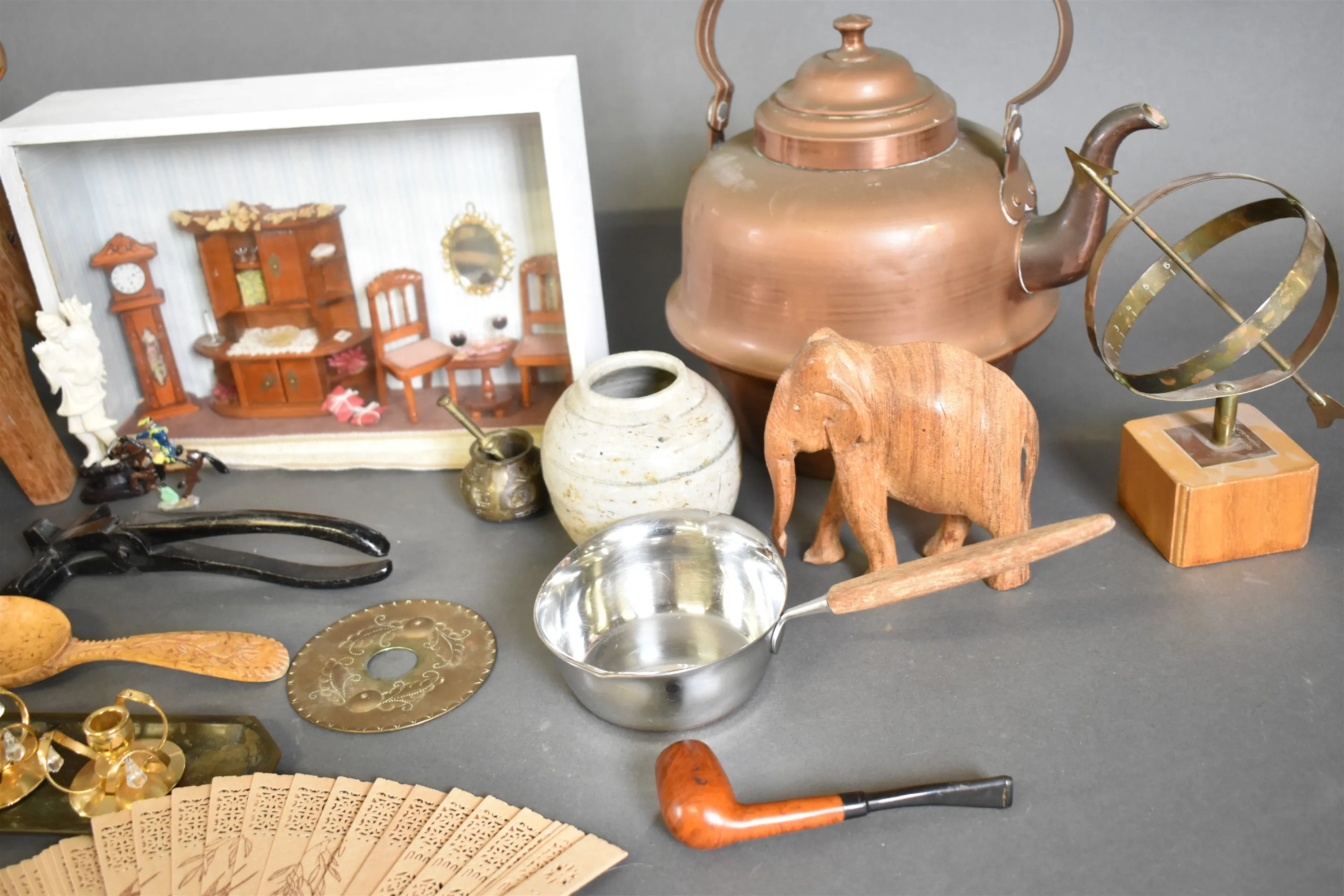 11674. Parti bla pall, tittskåp pch kaffepanna, högsta höjd 24 cm
