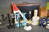 4274. Parti bla resväska, belysning och ljusstakar, längsta mått 75 cm