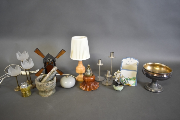 16353. Parti bla stenmortel, ljusstakar och bordslampor, högsta höjd 34 cm