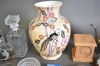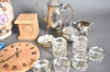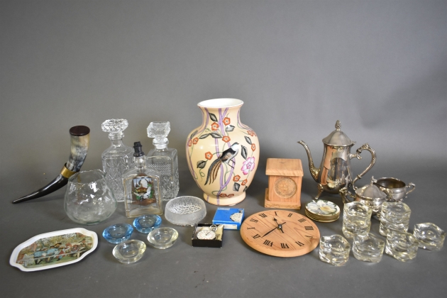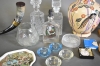 13898. Parti bla vas med asiatisk dekor, glaskaraffer och ljushållare, högsta höjd 32 cm