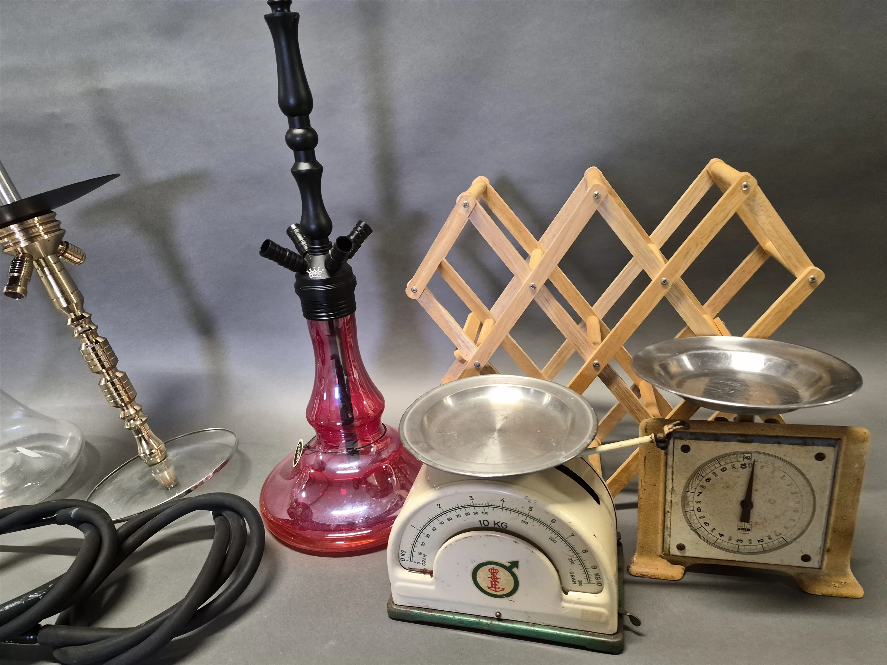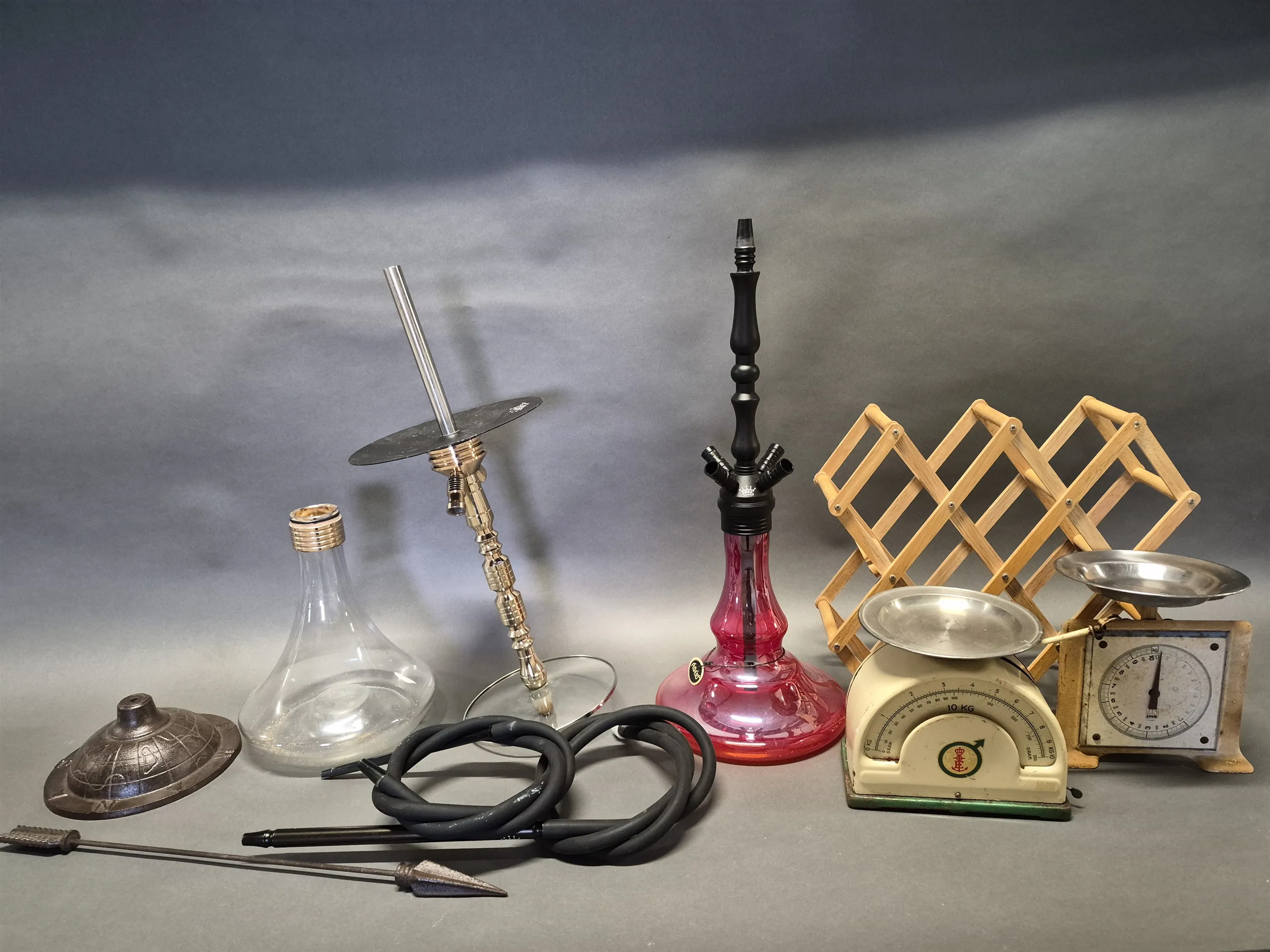 19153. Parti bla vattenpipor och vågar, ej genomgånget, högsta höjd 62 cm