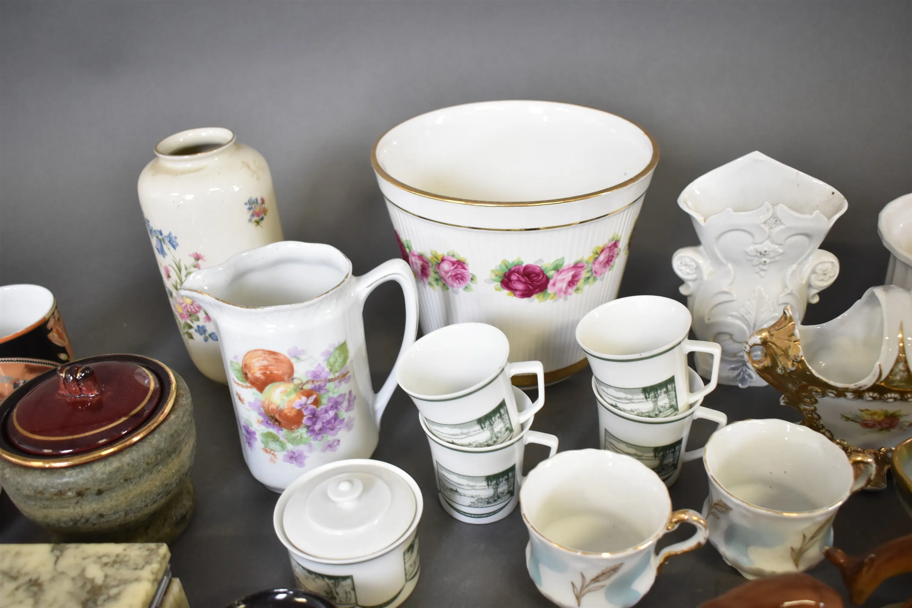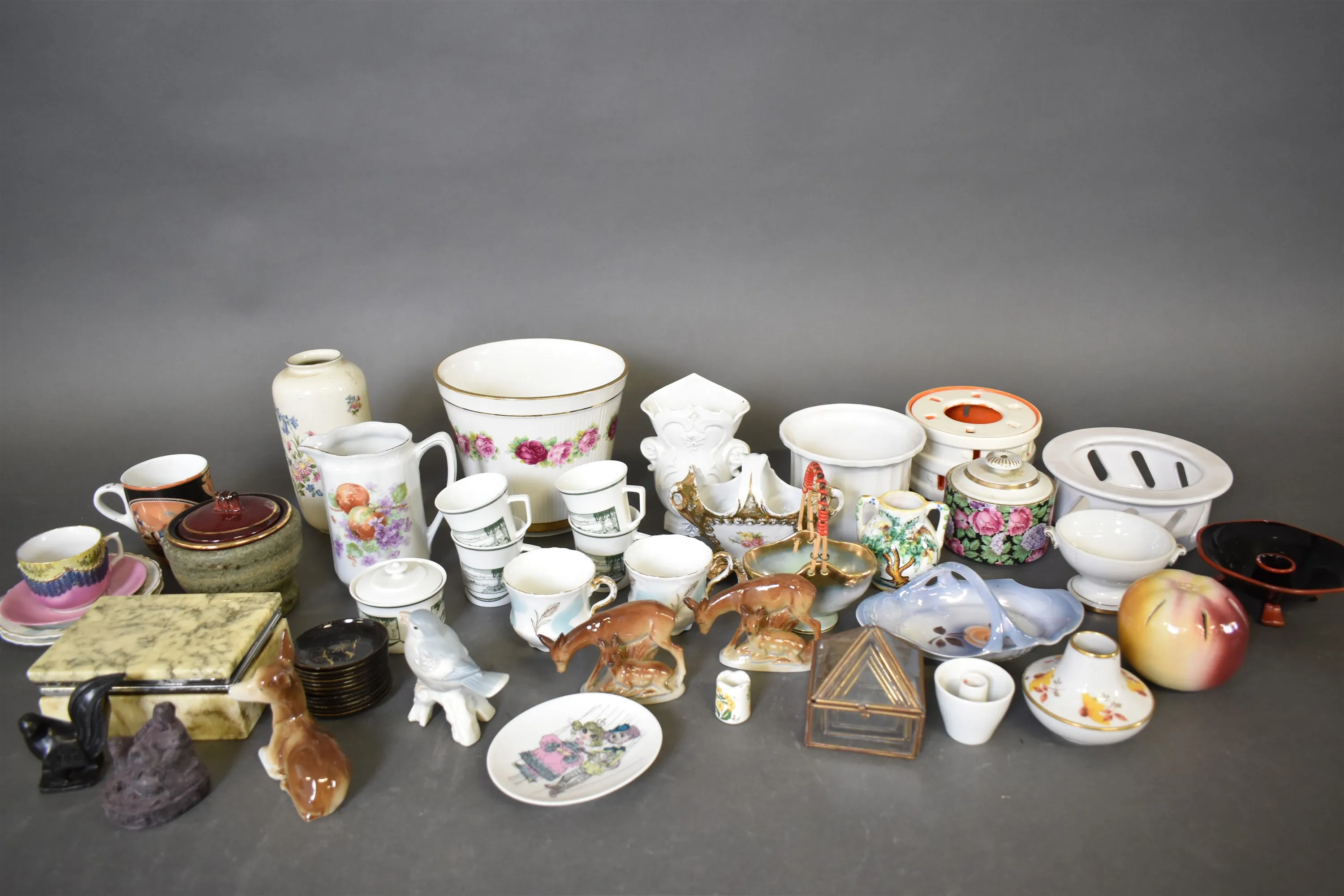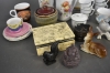 10448. Parti bla ytterfoder, figuriner och stenask, högsta höjd 18 cm