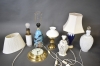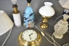 4634. Parti bordslampor & väggklocka högsta 50 cm