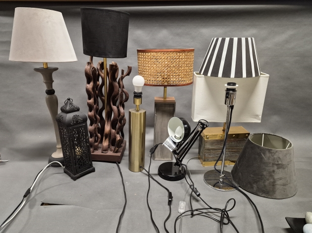 17583. Parti bordslampor, högsta 80 cm, en gren lös på höga lampan