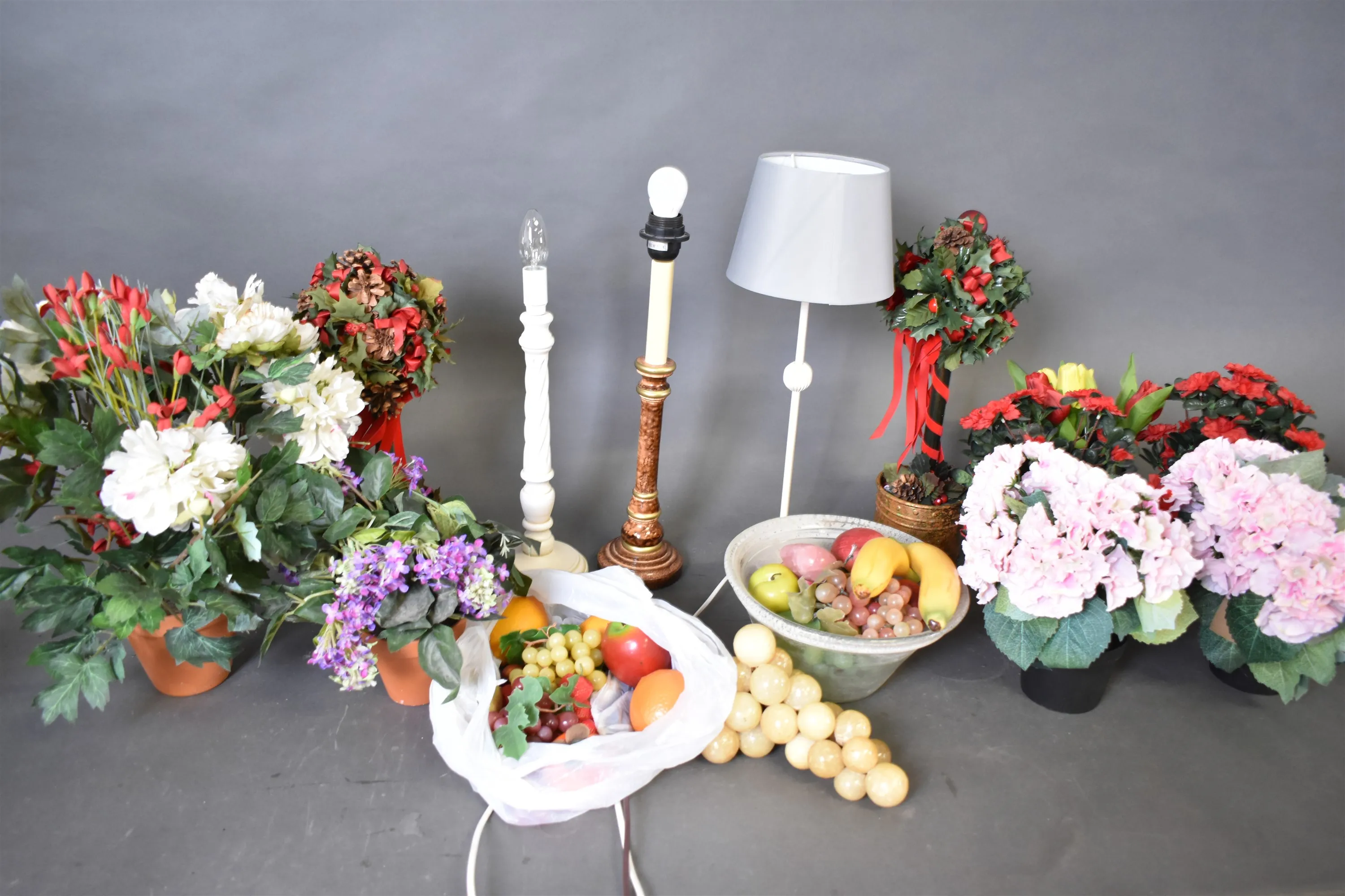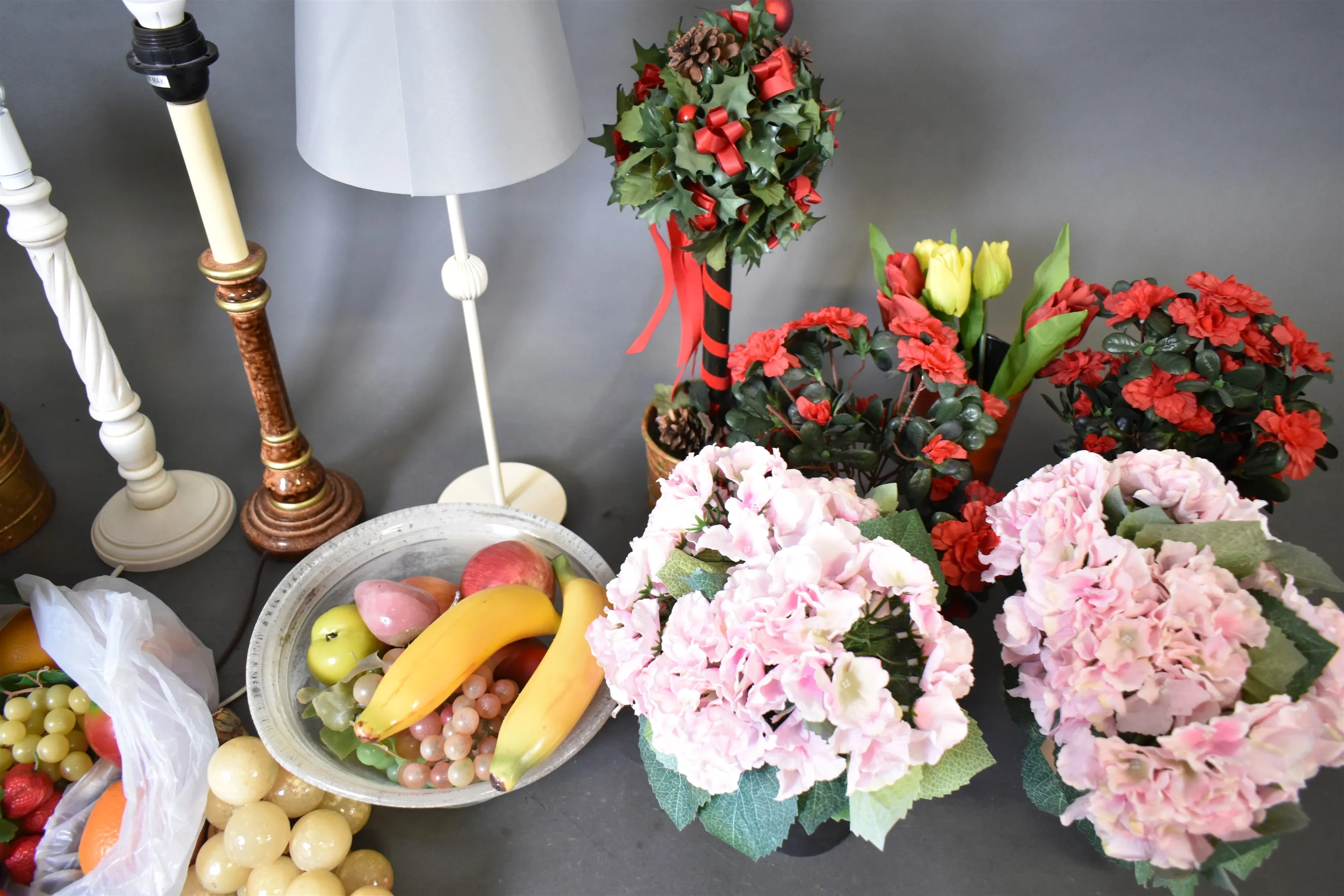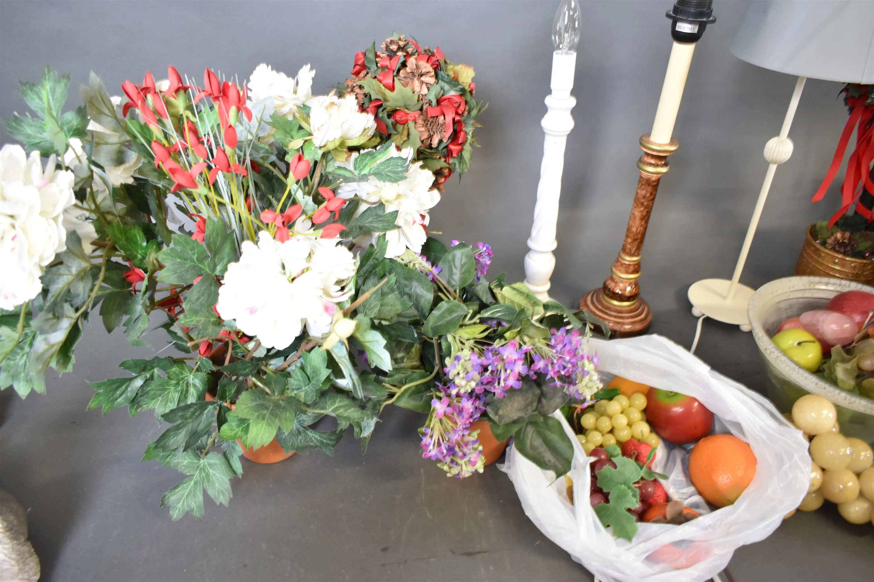 6327. Parti bordslampor konstblommor & frukter högsta 50 cm