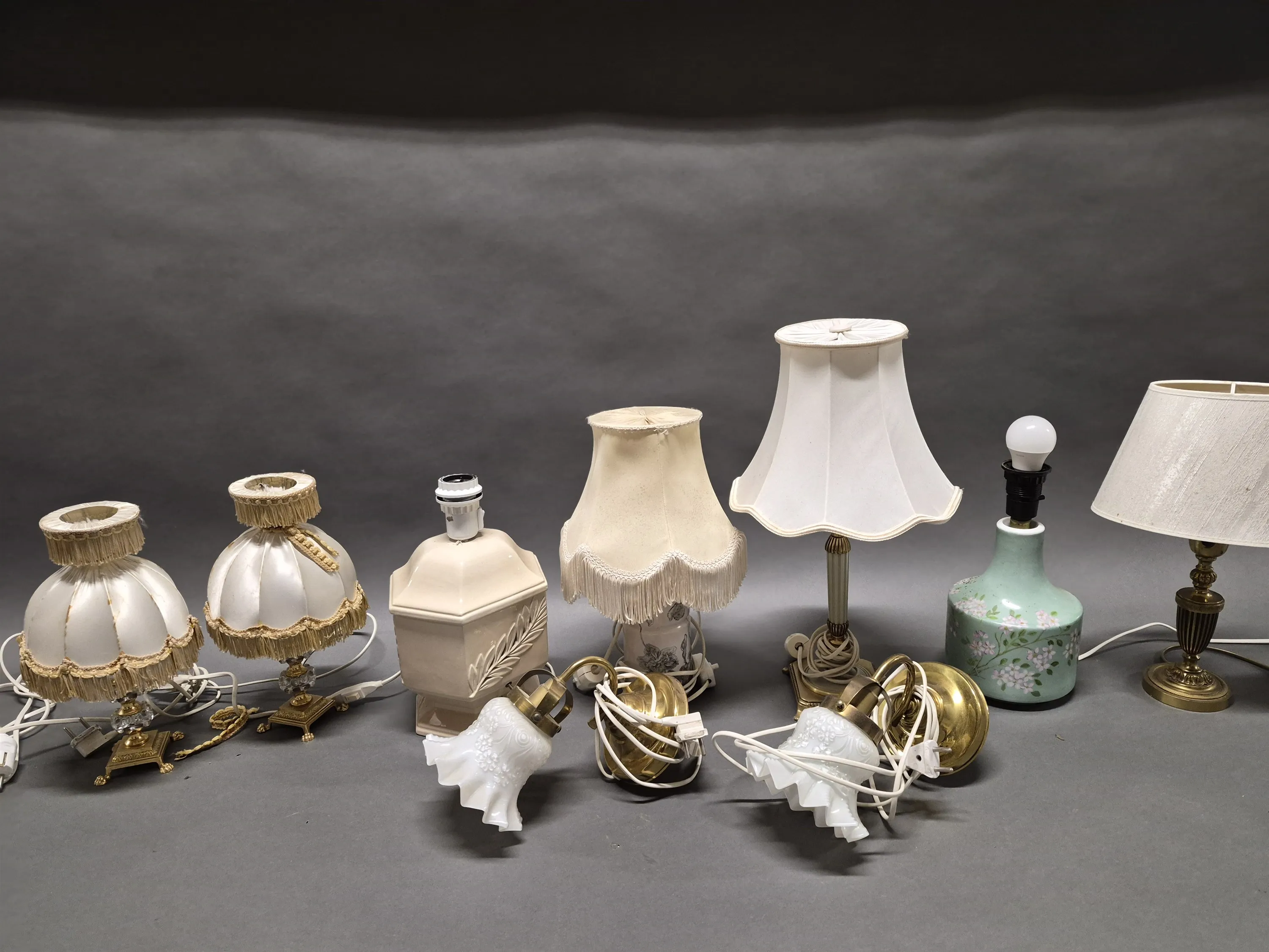 17420. Parti bordslampor och vägglampetter, högsta höjd 49 cm