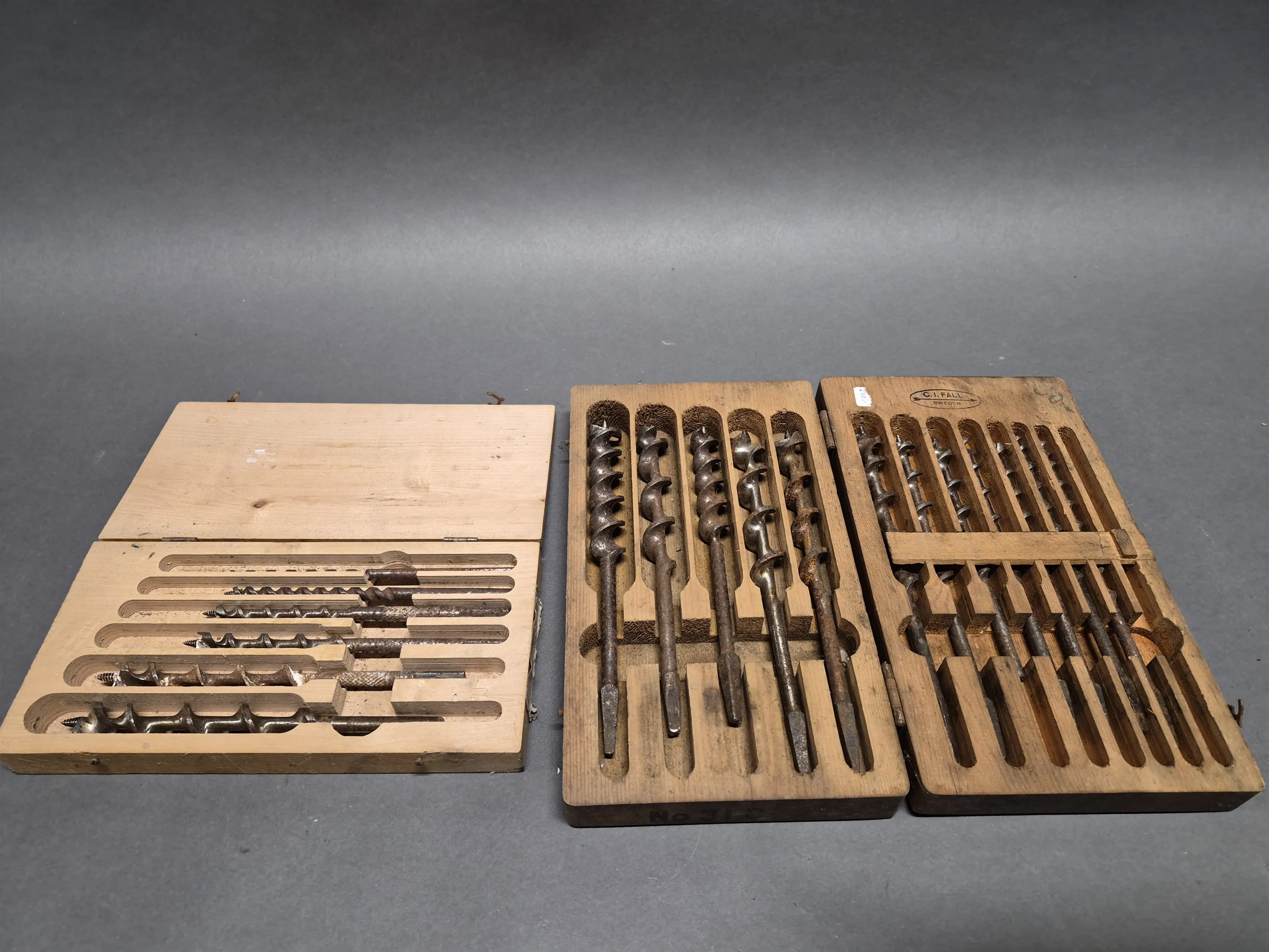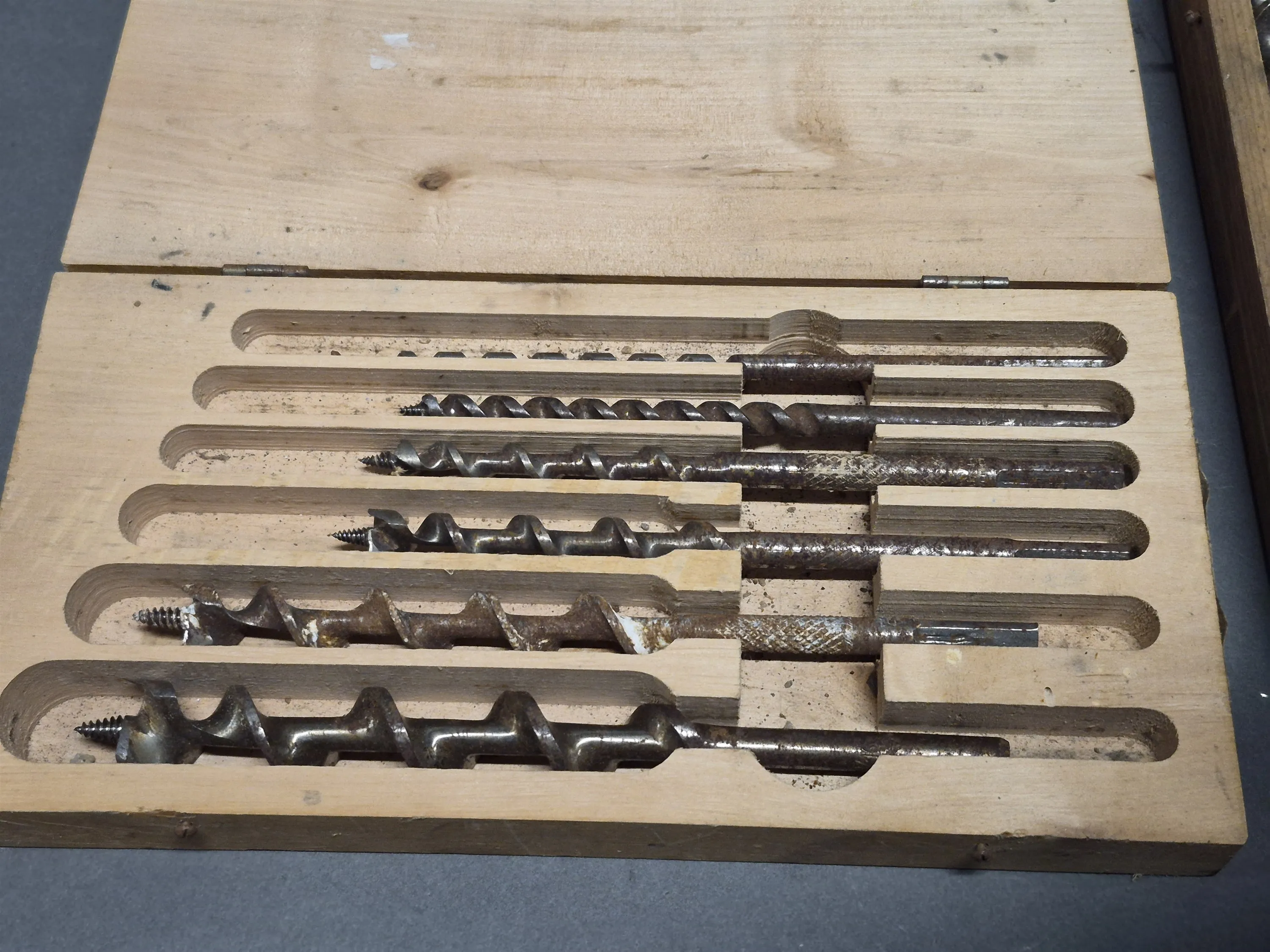 18297. Parti borr, 2 lådor, längsta mått 28 cm