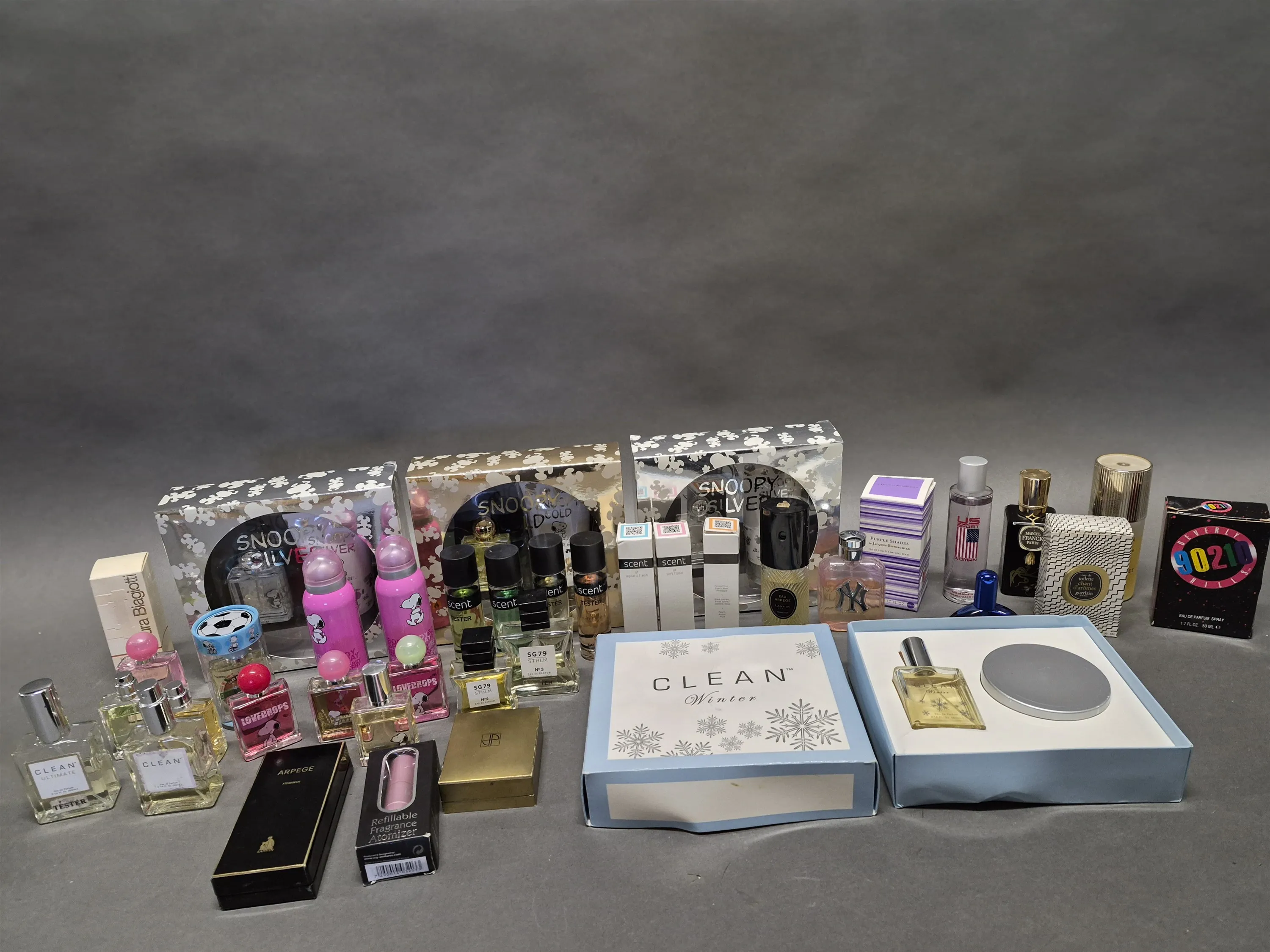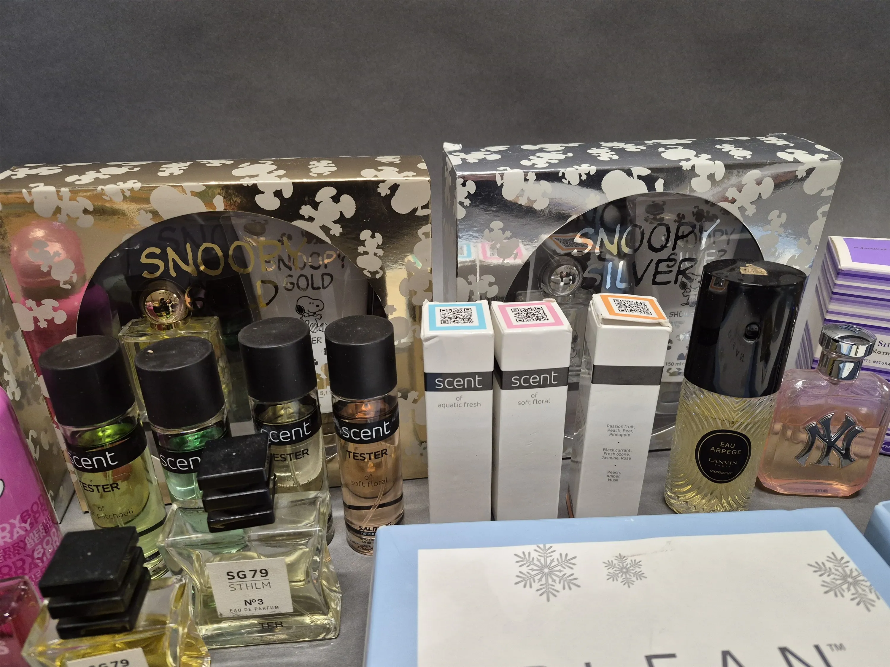 18577. Parti damparfymer bla Clean, Lanvin och oöppnade presentförpackningar