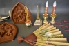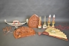 7797. Parti dekorationsföremål i asiatisk stil, trä och plast, högsta höjd på bild 35 cm