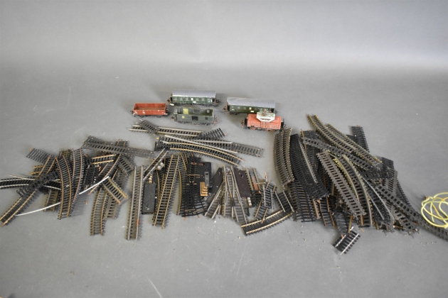16616. Parti delar till modelljärnväg Fleischmann bl.a lok