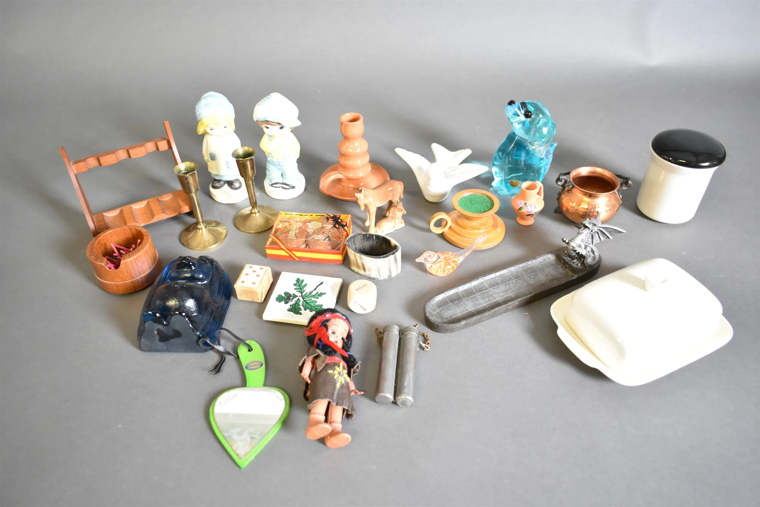 14104. Parti diverse bl.a smörbytta och glaskonst FM, längd på smörbytta ca 15 cm