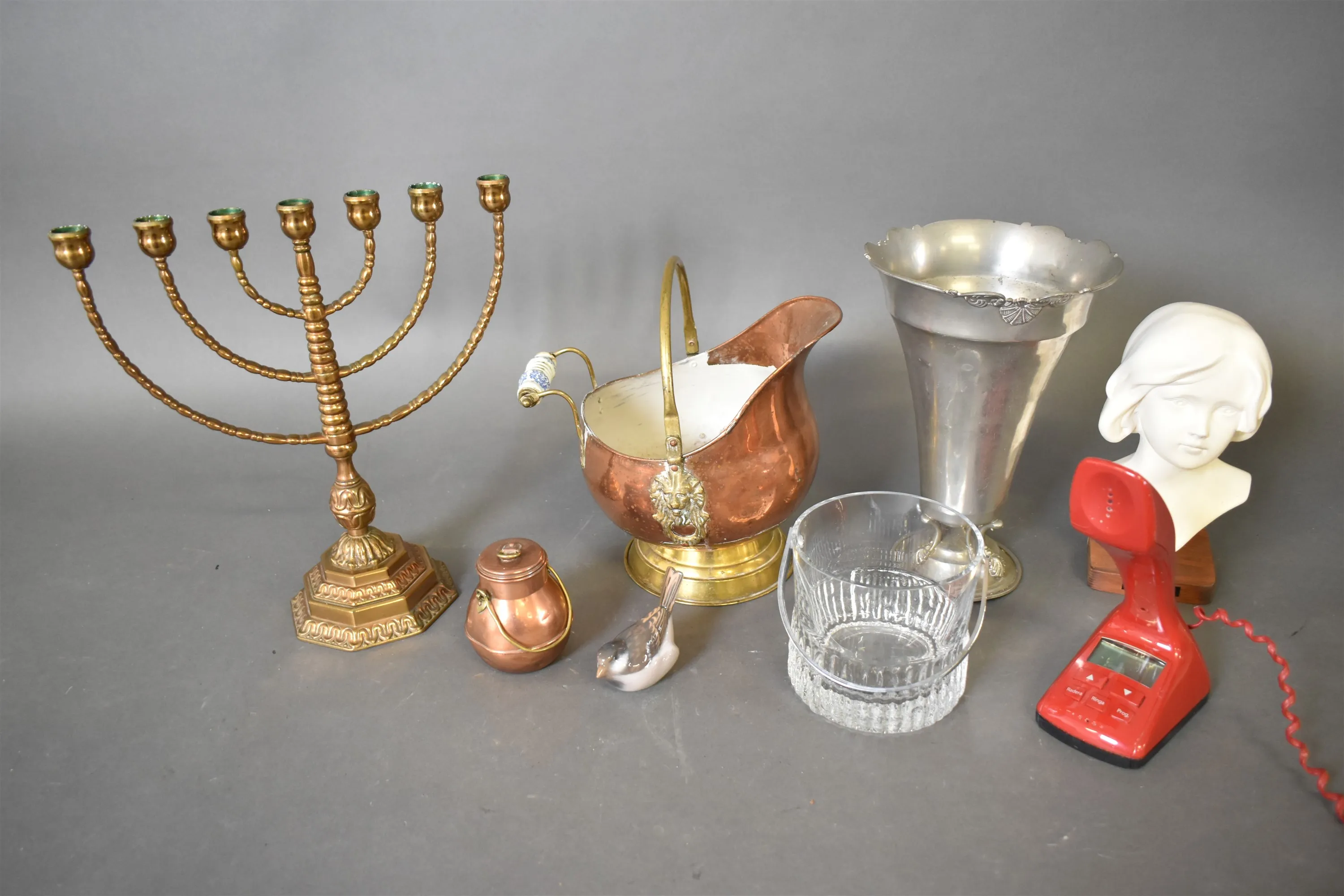 13278. Parti diverse bl.a titusljusstake och byst, högsta höjd 27 cm