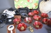 10927. Parti diverse bla bordslampa och ljuslyktor, högsta höjd på bild 33 cm