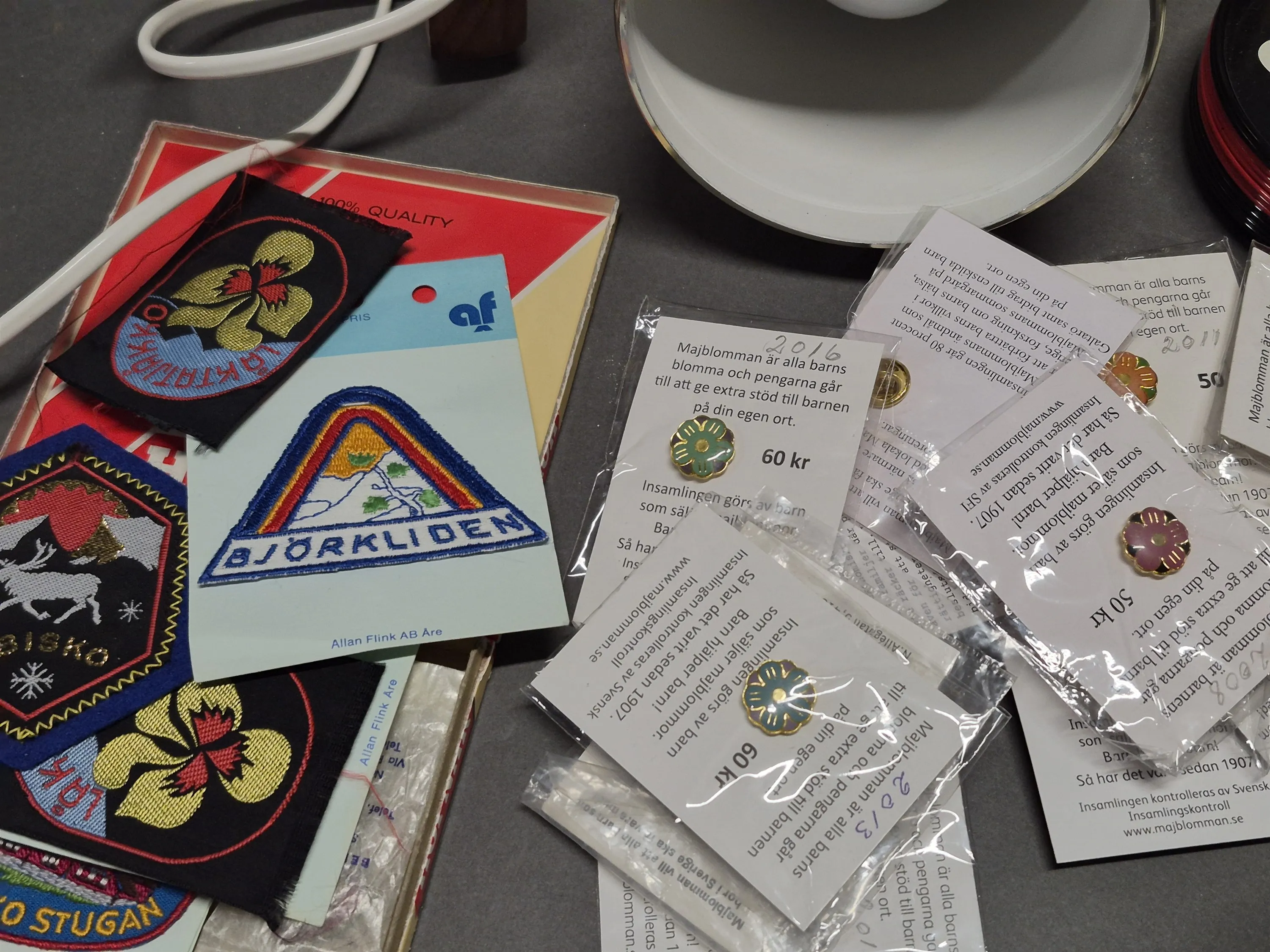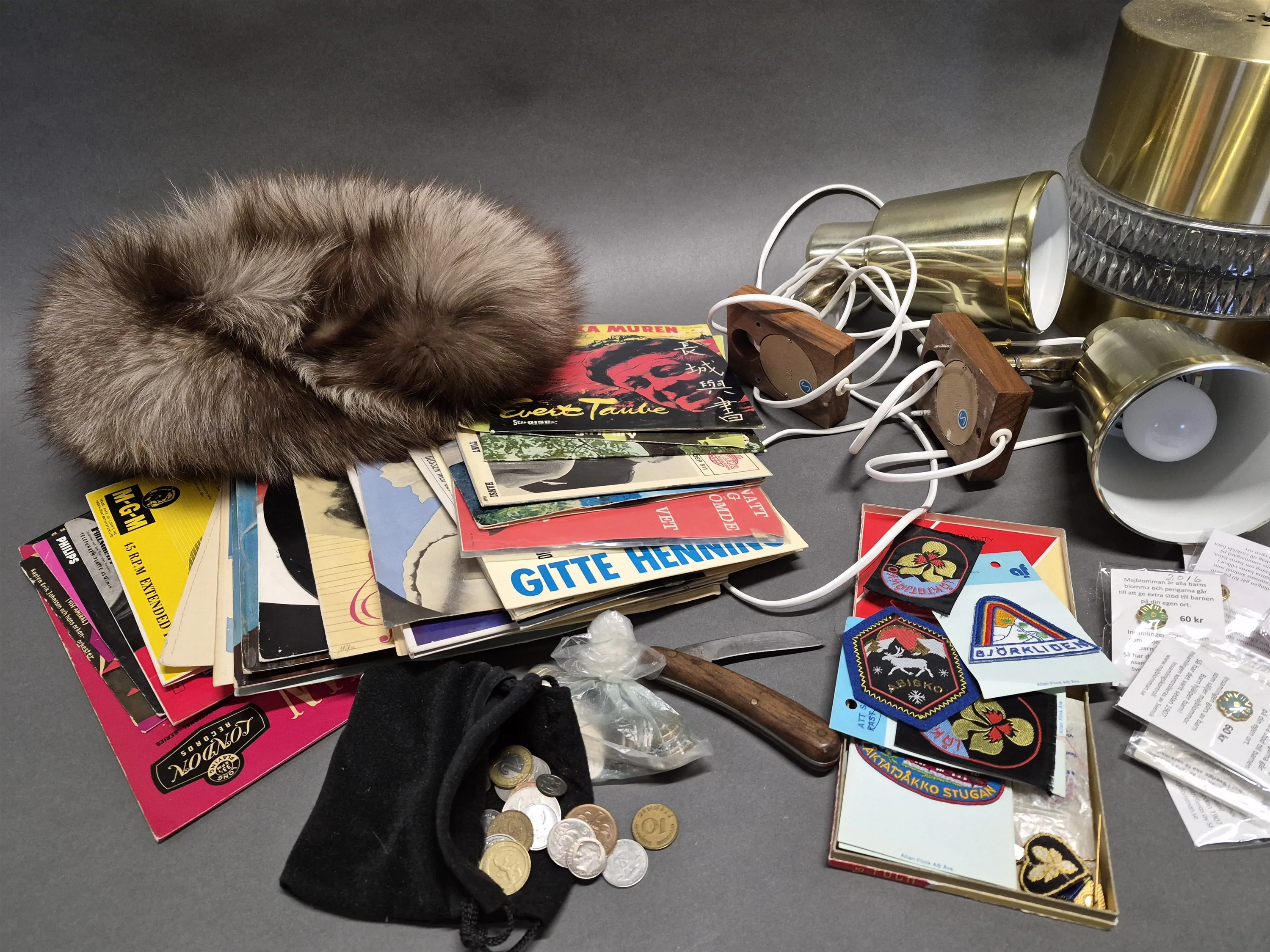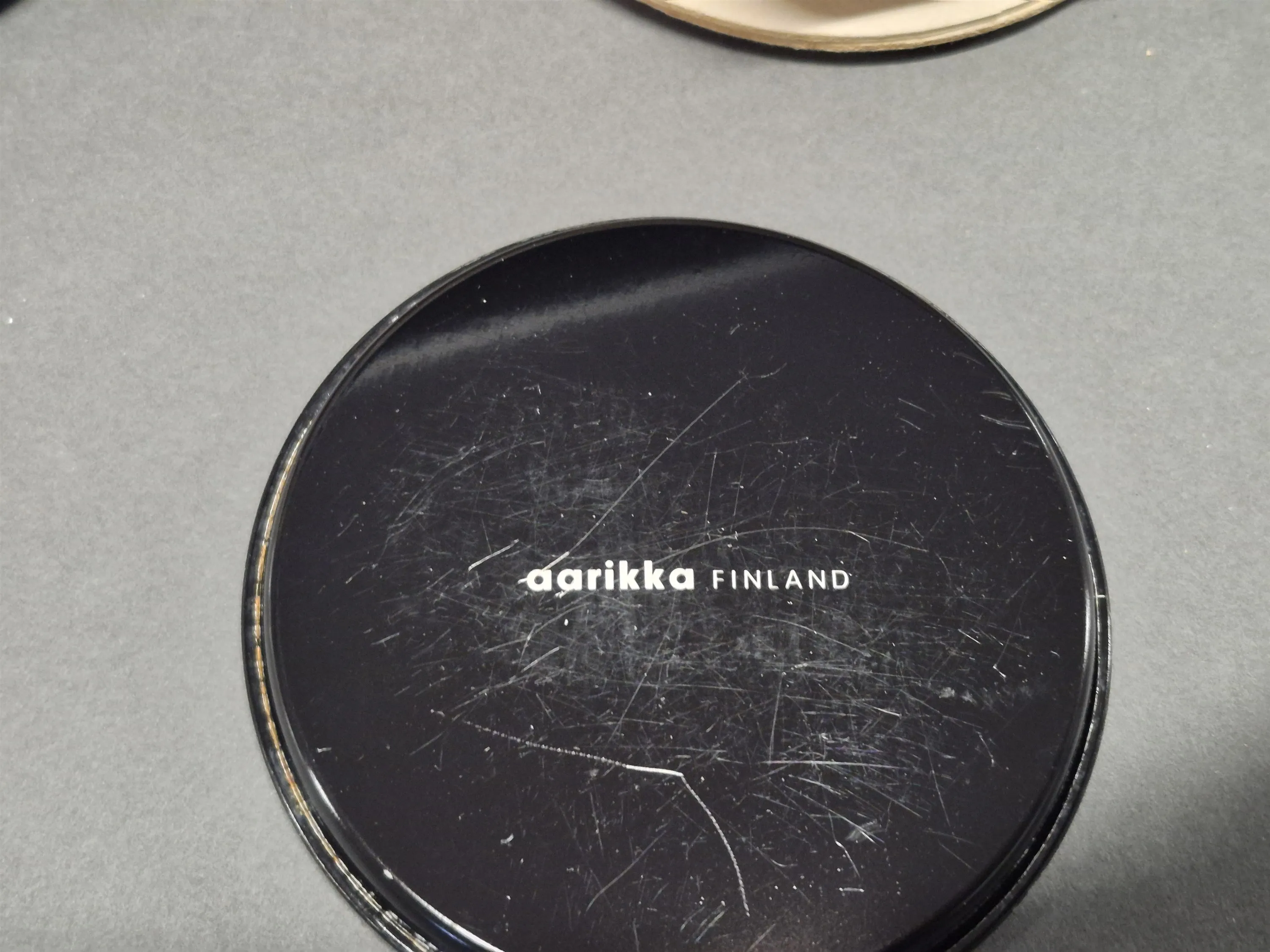18884. Parti diverse bla drinkunderlägg Aarikka, belysning och majblommor, högsta höjd 23 cm