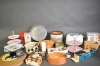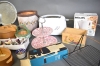 3671. Parti diverse bla etagefat Wedgewood, svepask och kaffeburkar, högsta höjd på bild 34 cm