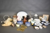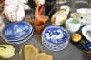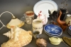 1833. Parti diverse bla samlartallrikar Kunglig Dansk, keramikfågel Erik Engqvist och snäcka, högsta höjd 32 cm