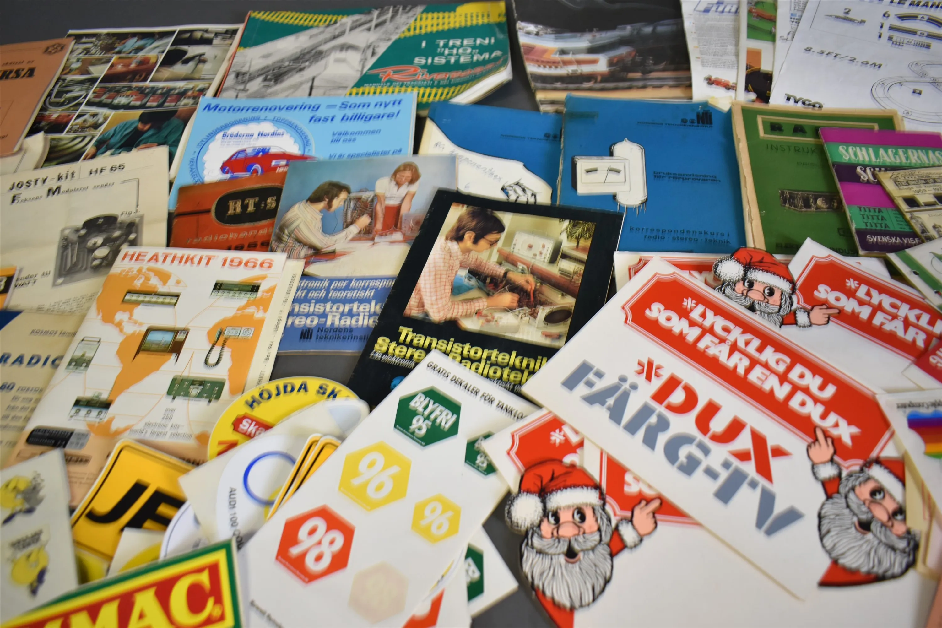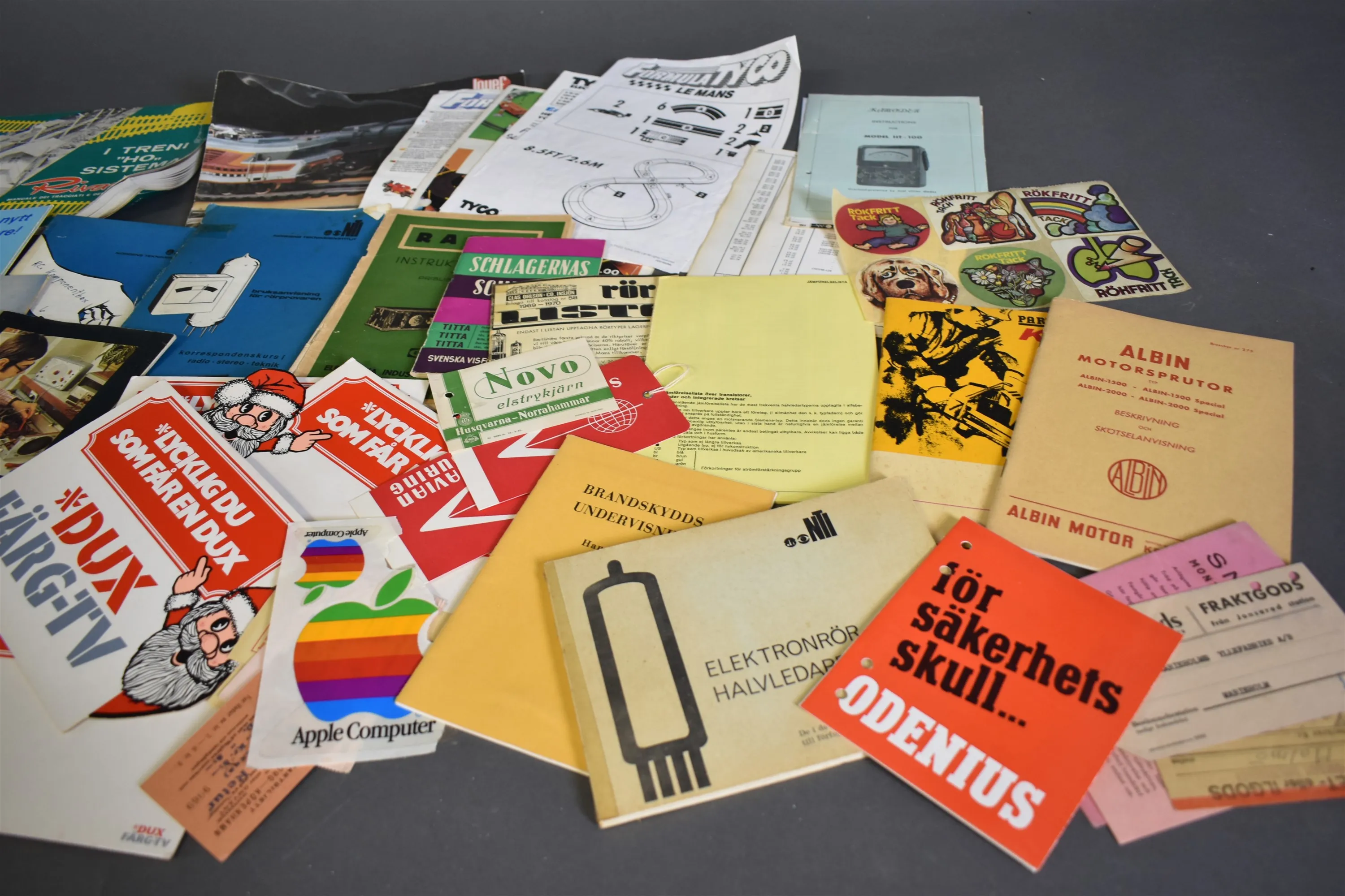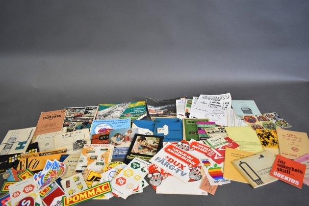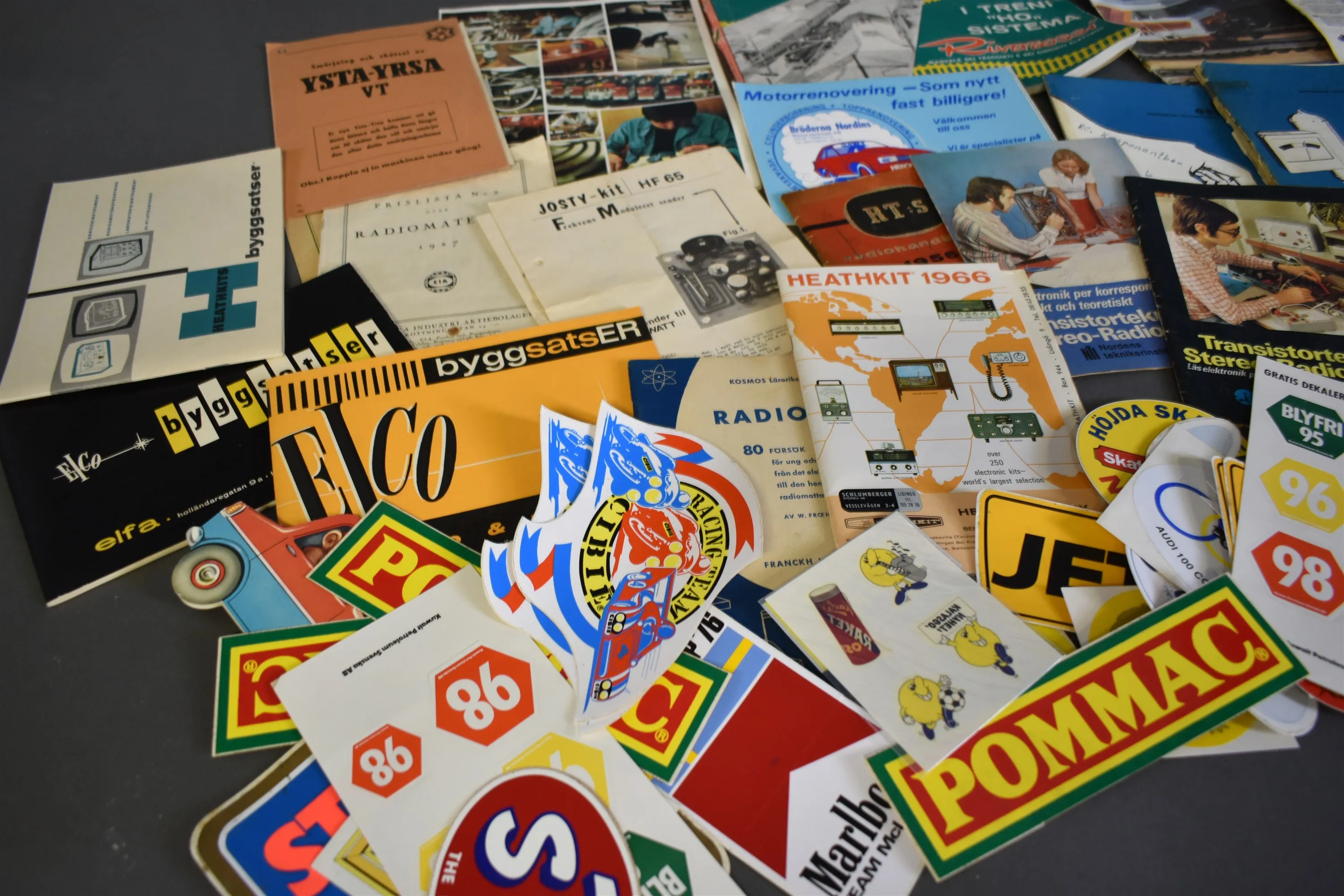 16121. Parti diverse brochyrer, reklamprylar och klistermärken