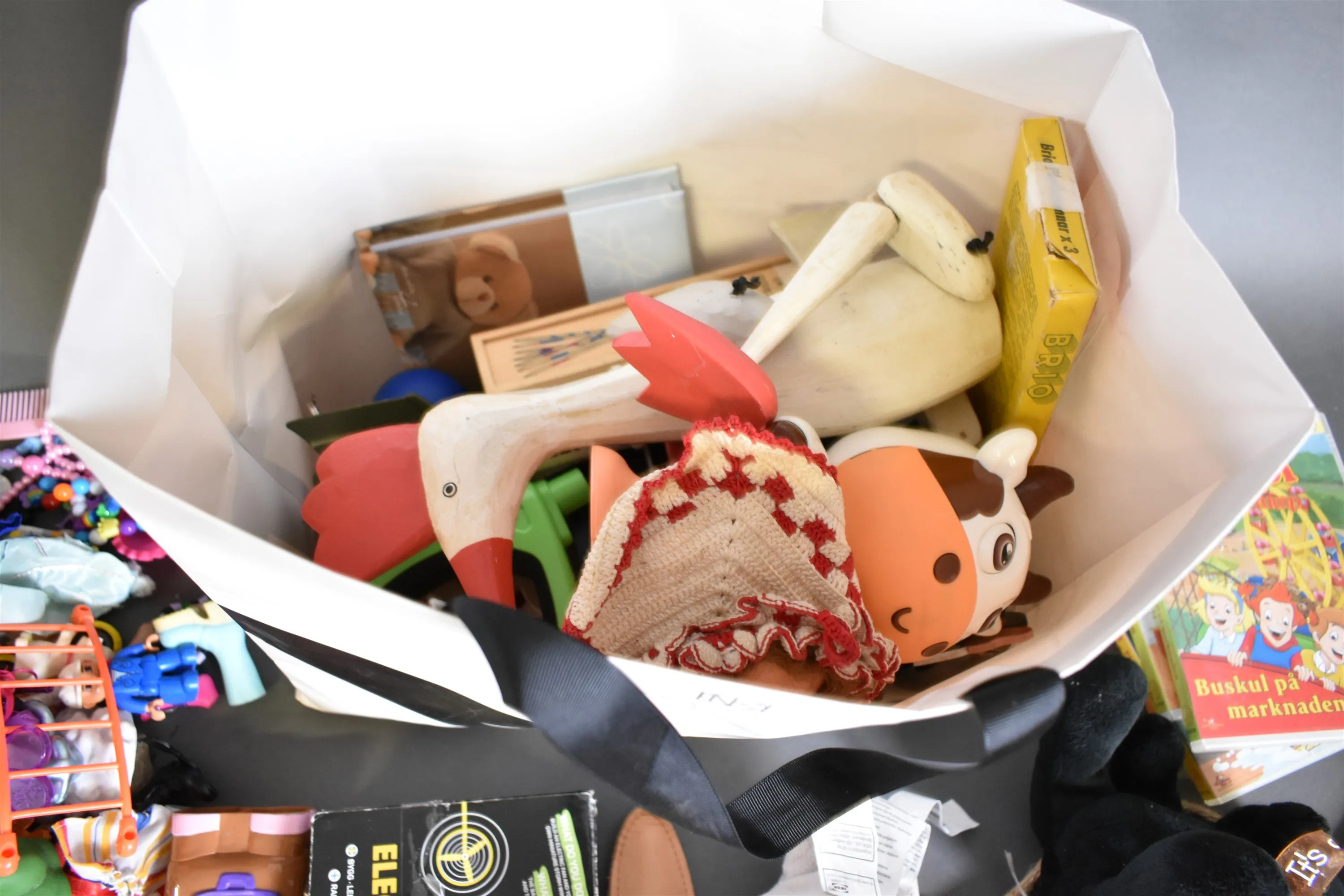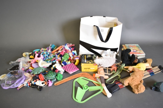 12502. Parti diverse leksaker bl.a ponny och trä anka