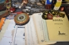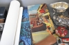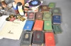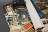 9775. Parti diverse samlarsaker bla sparbössor, foto & vykort och metall, högsta höjd 41 cm