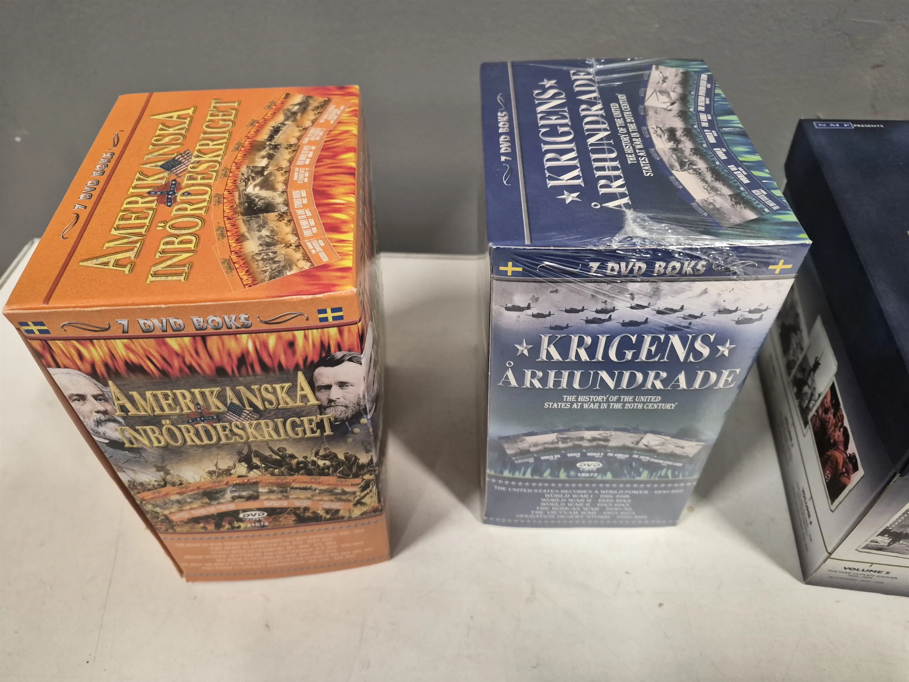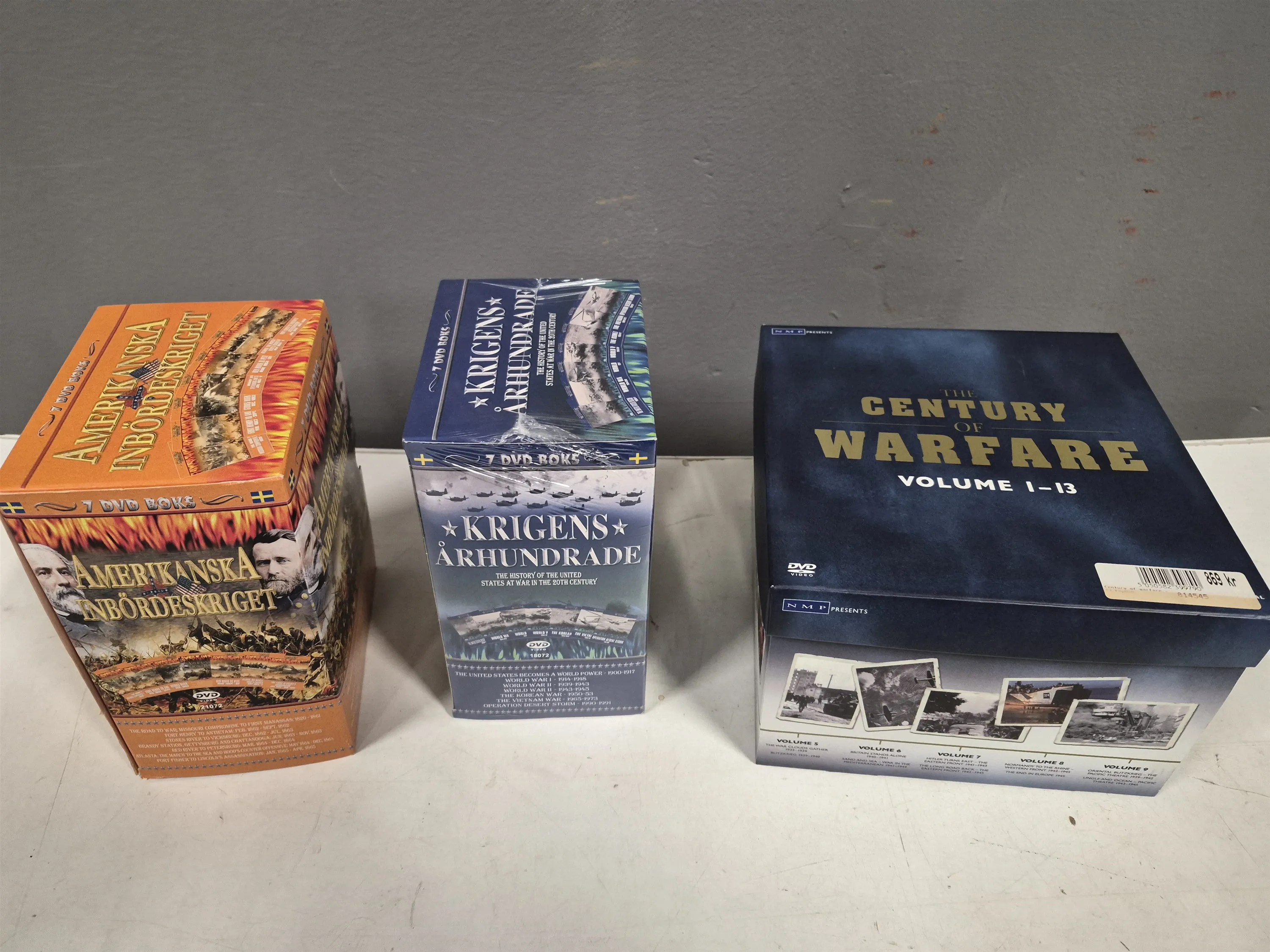 19030. Parti DVD boxar 3 st, krigsrelaterat, bl.a Krigens Århundrade inplastad