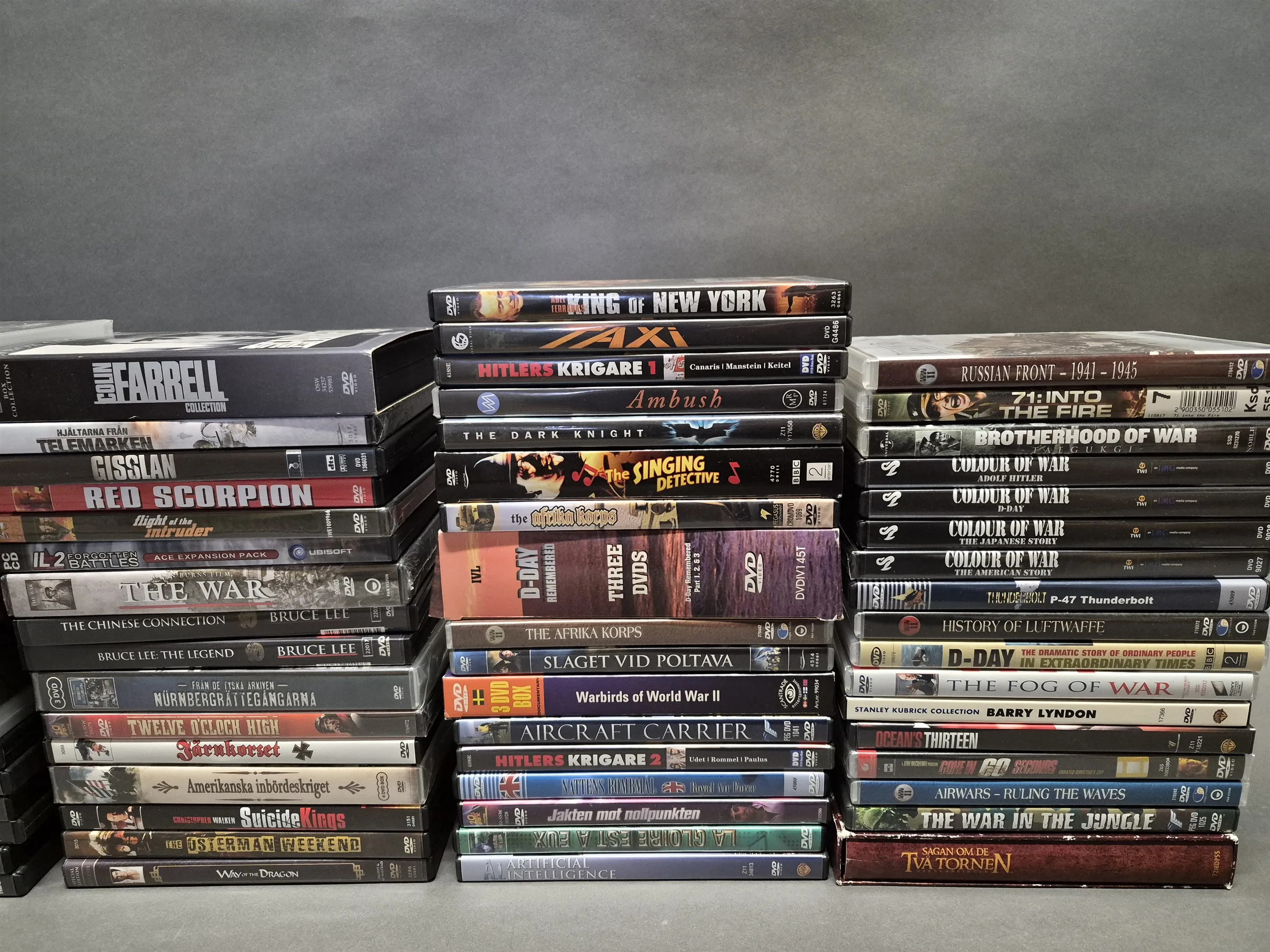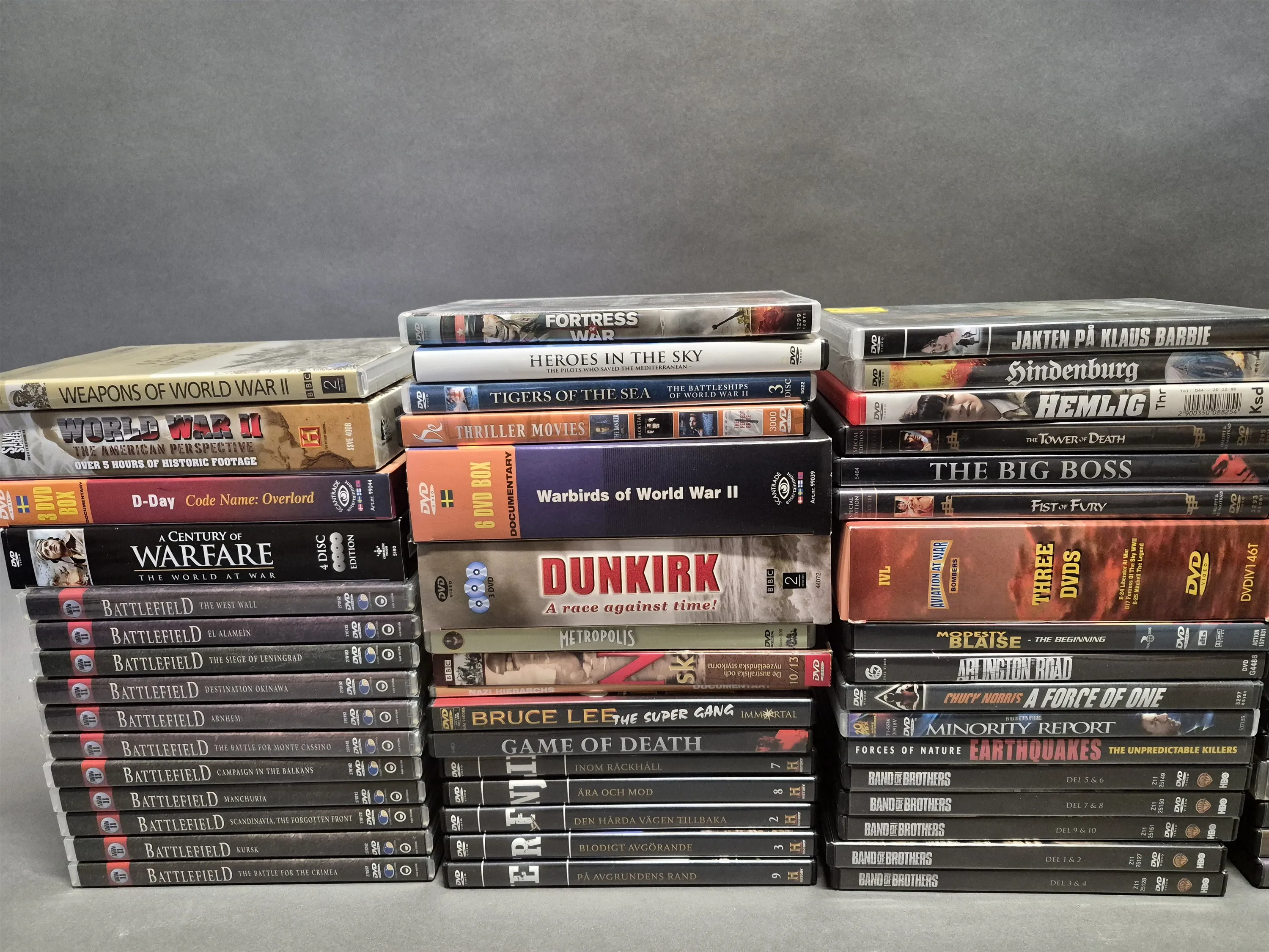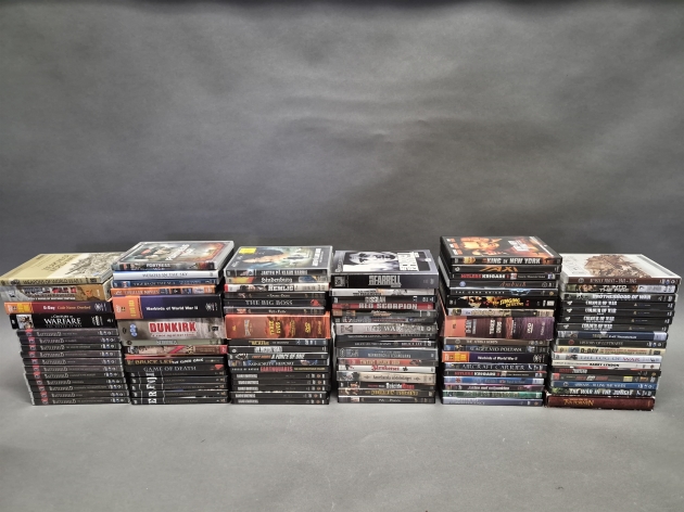 19514. Parti DVD filmer bla krigsdokumentärer och Bruce Lee