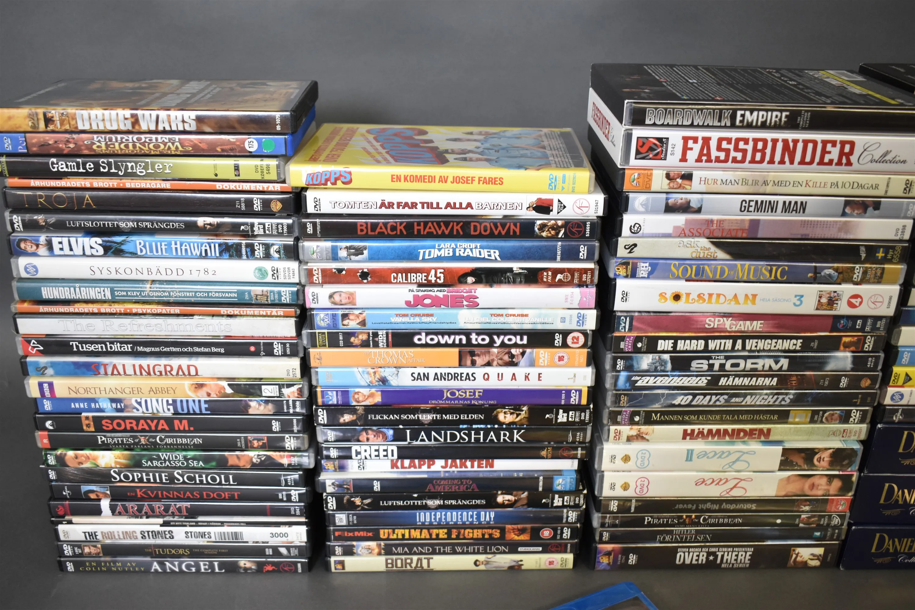 15378. Parti DVD filmer bla Solsidan och Troja, 2 lådor