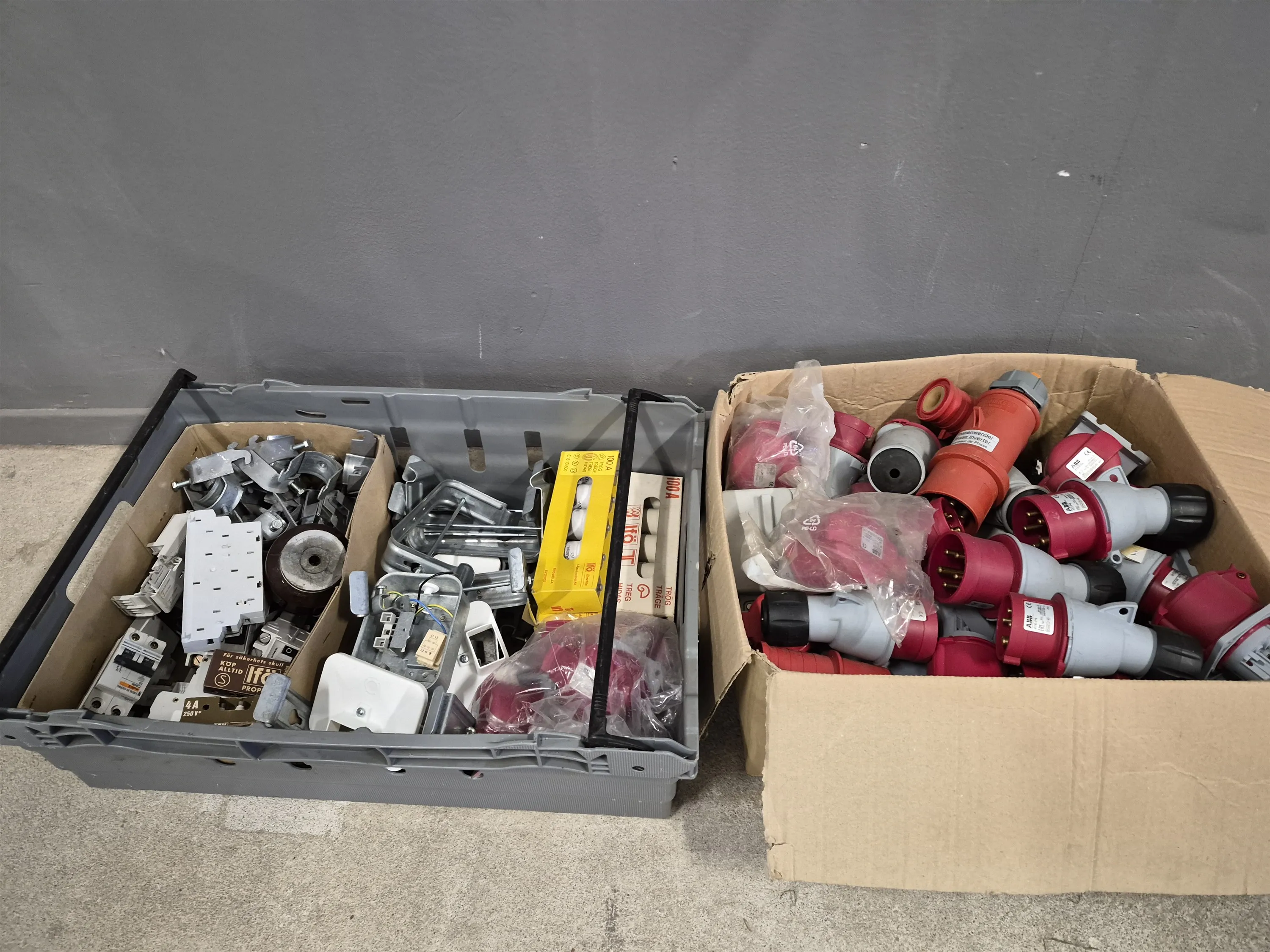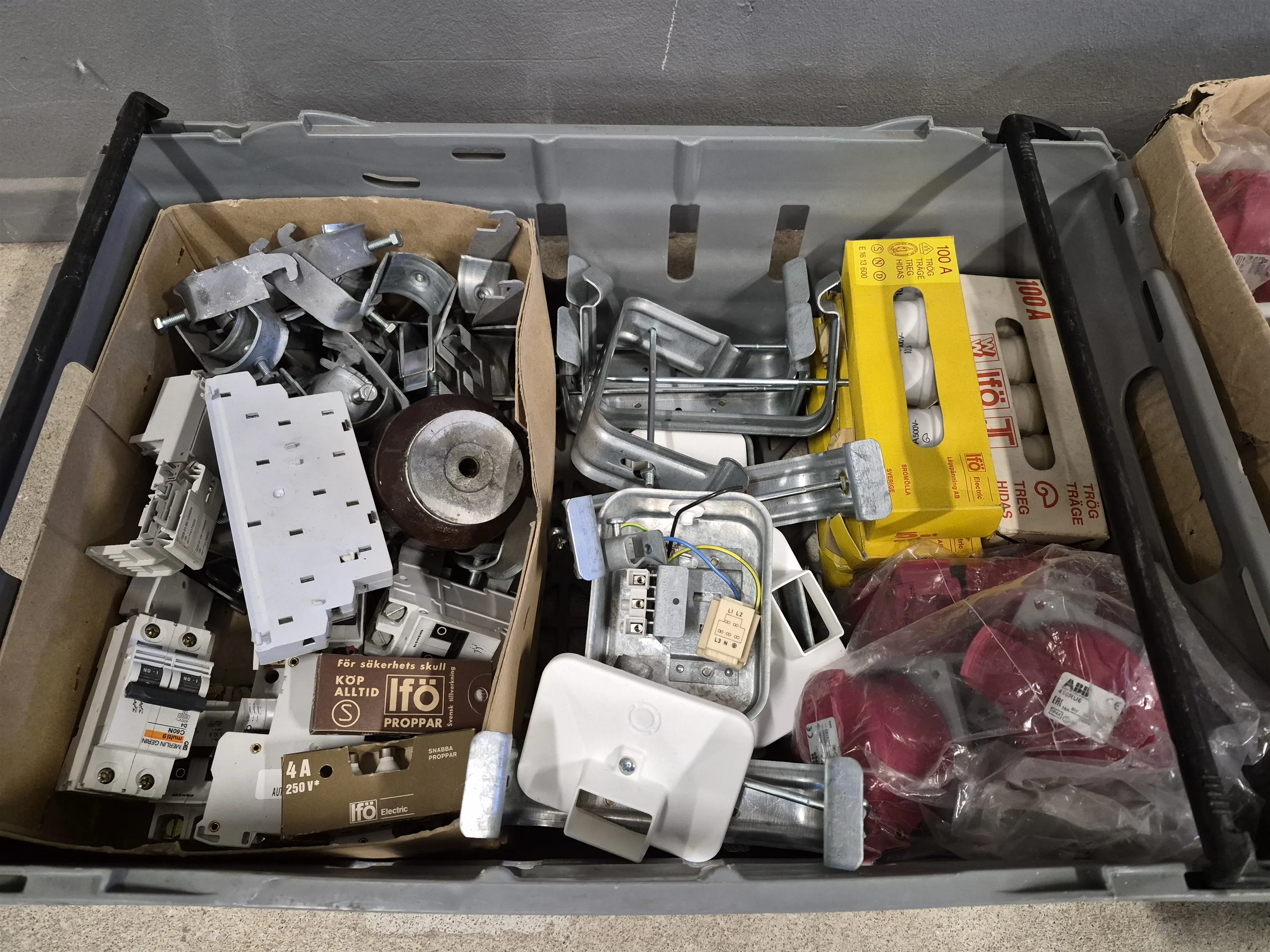 19734. Parti el- och verkstadsföremål bla kontakter, 2 lådor