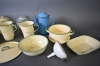 7526. Parti emaljerad metall mestadels Kockums bla kanor och potta, högsta höjd 24 cm