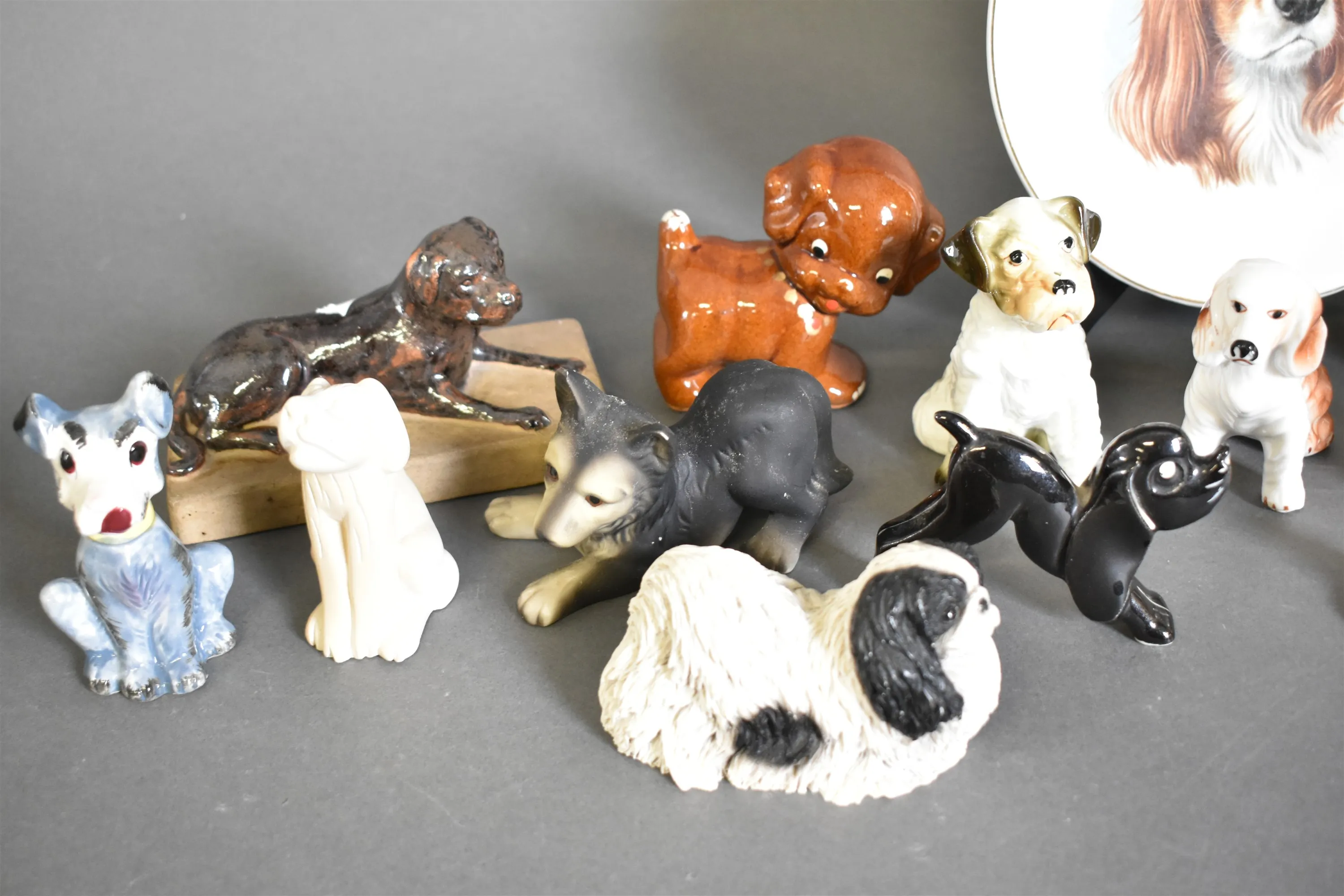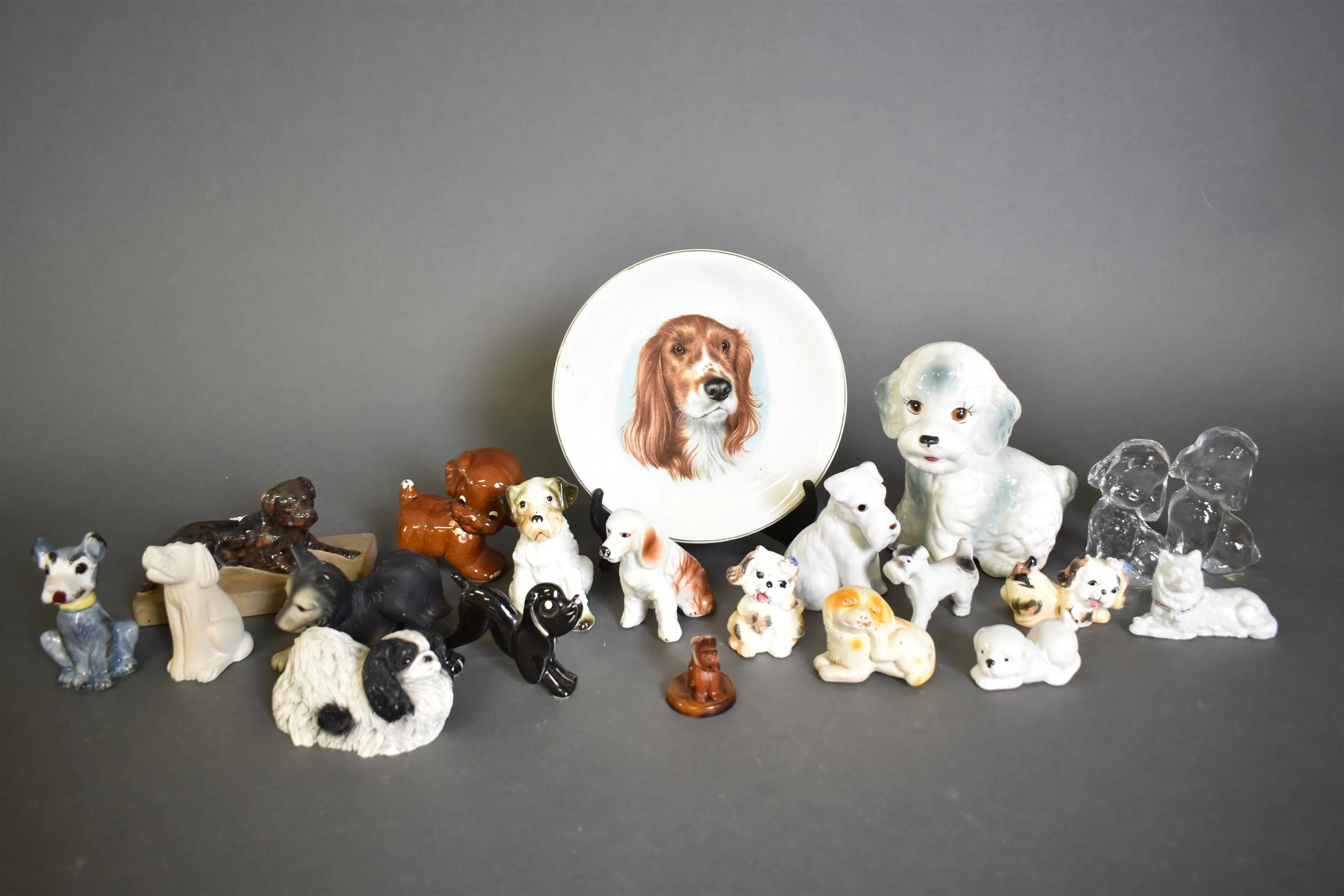 11787. Parti figurer och figuriner hundar, bla porslin och glas, högsta höjd på bild 22 cm