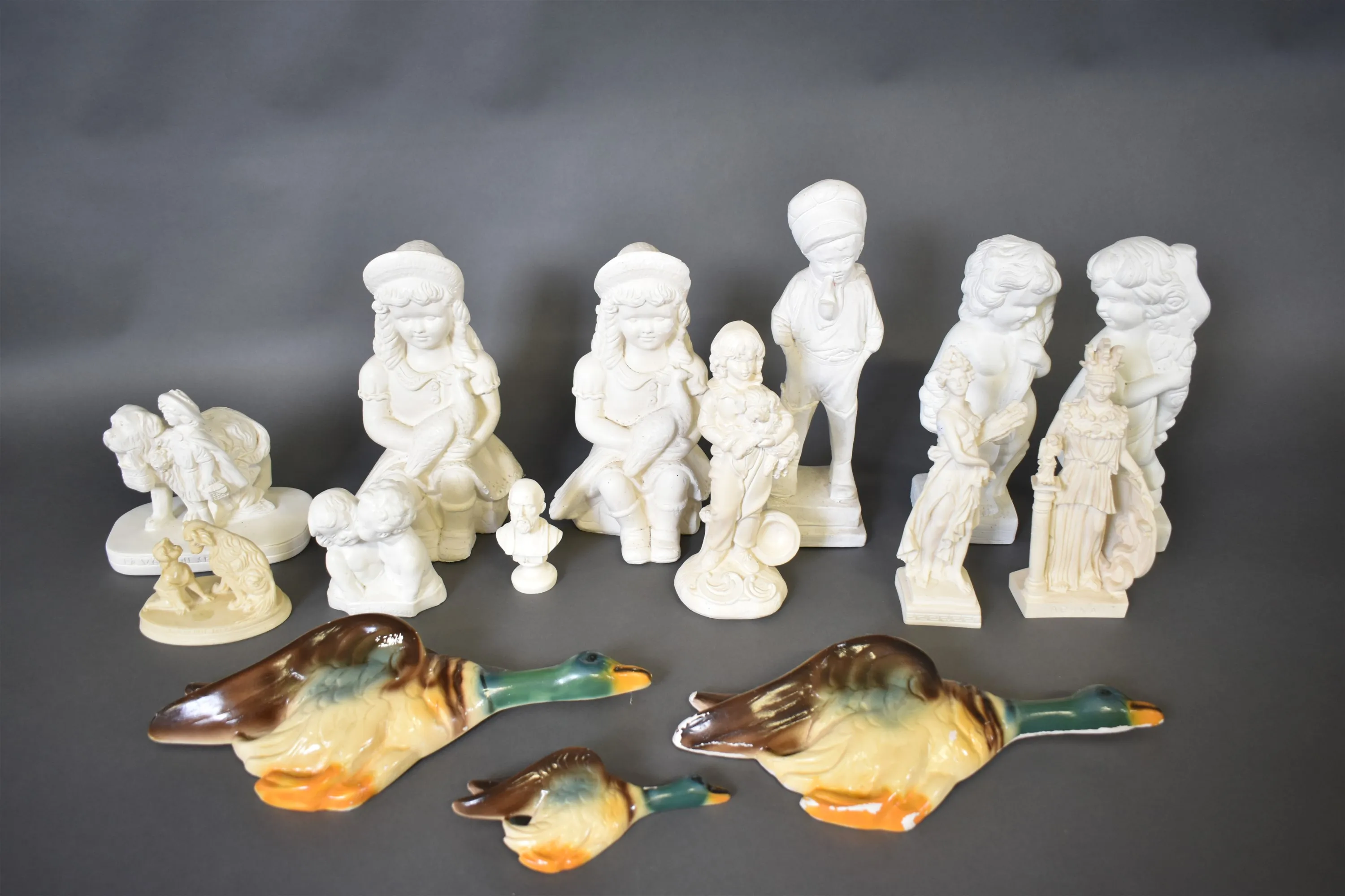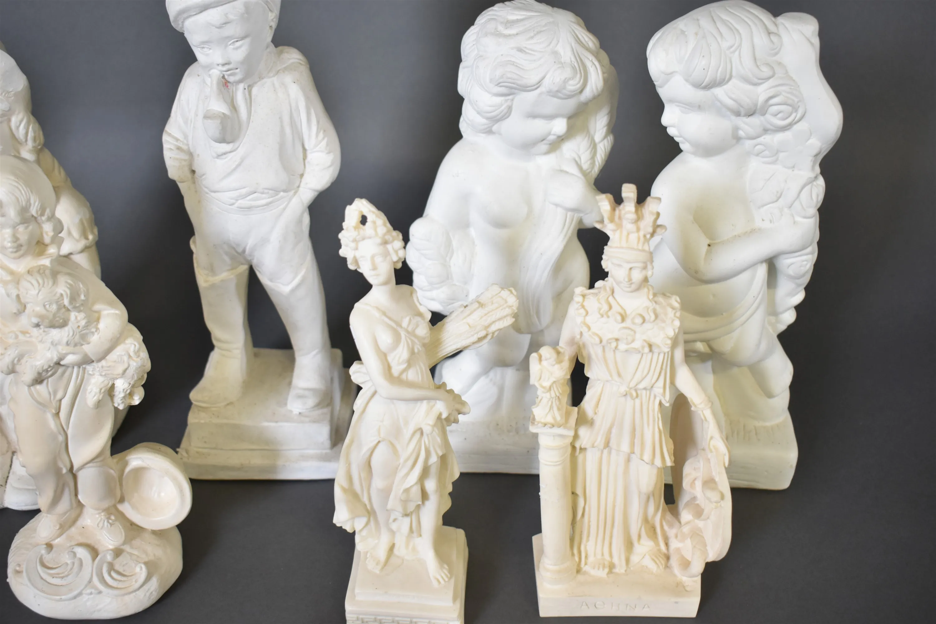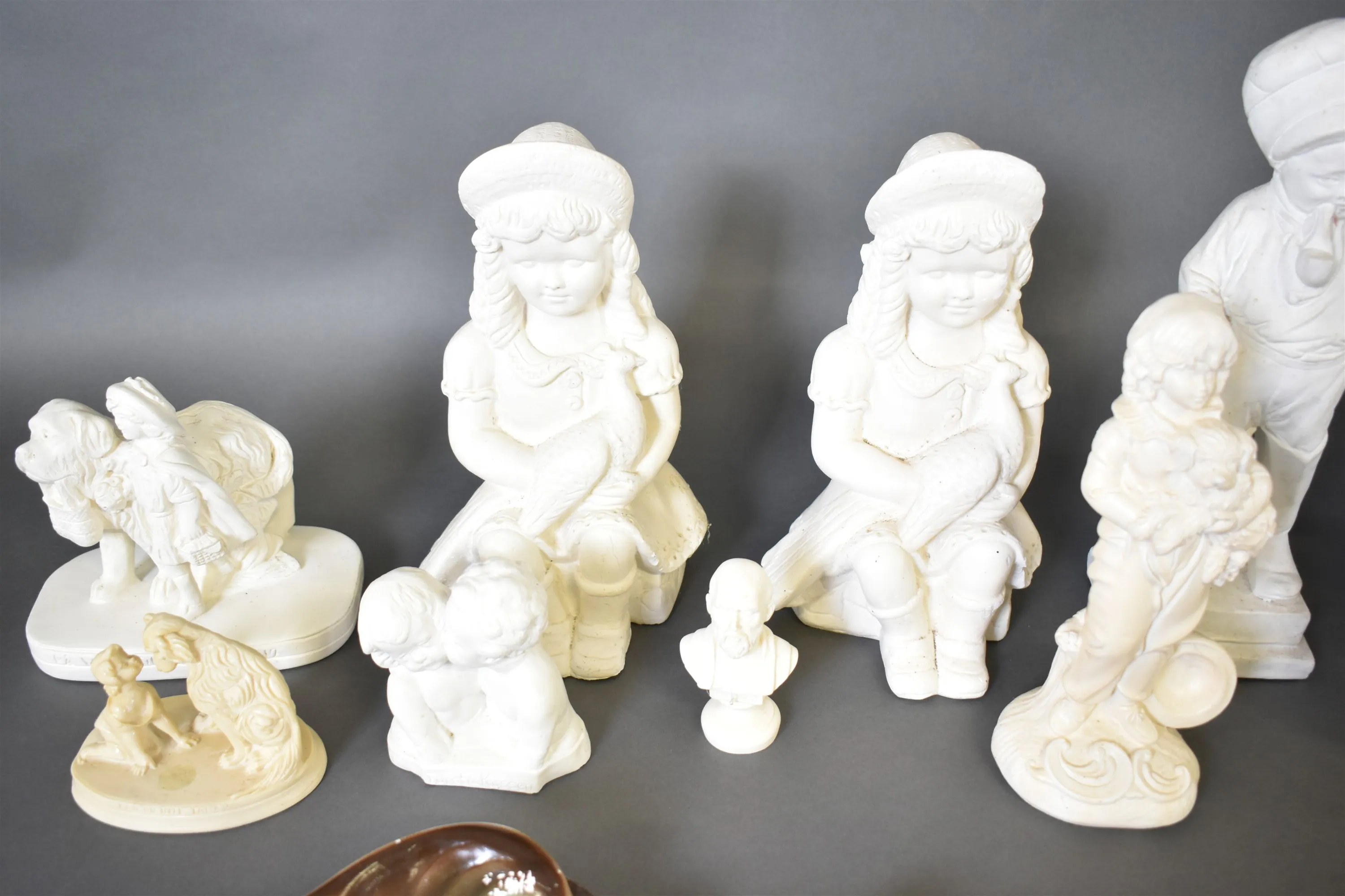 14803. Parti figuriner i bla gips och konstmassa, högsta höjd 36 cm