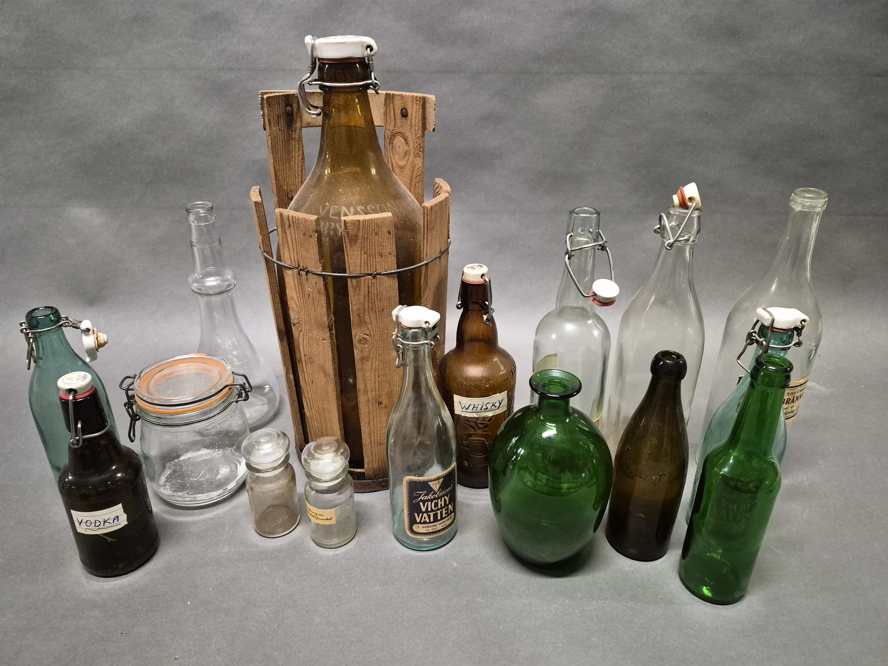 17374. Parti flaskor bl.a drickaflaska högsta 46 cm