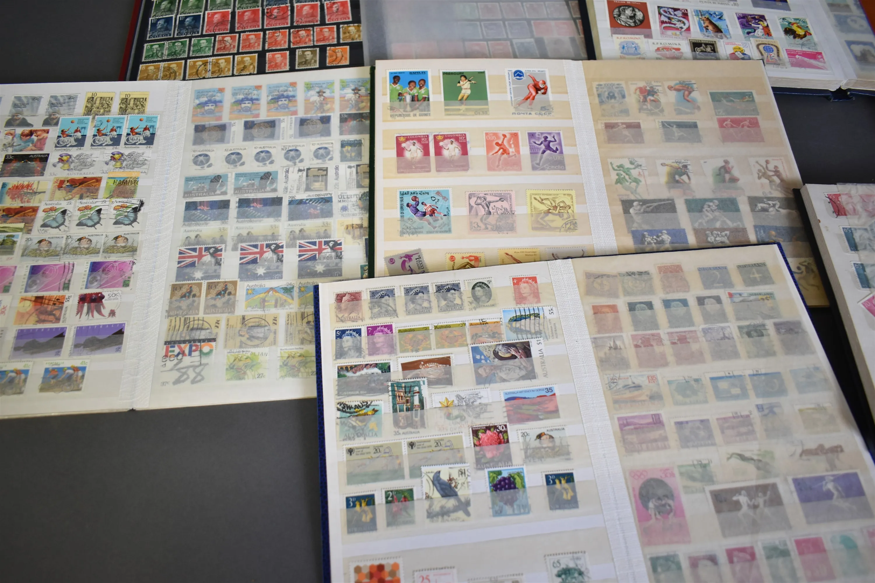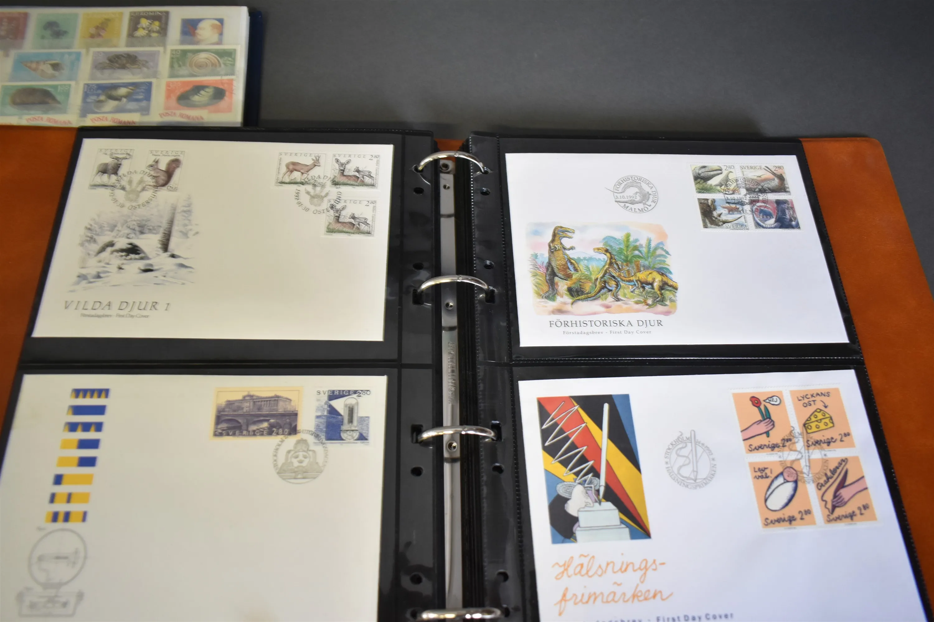 4479. Parti frimärken 6 pärmar och Förstadagsbrev FDC 1 pärm