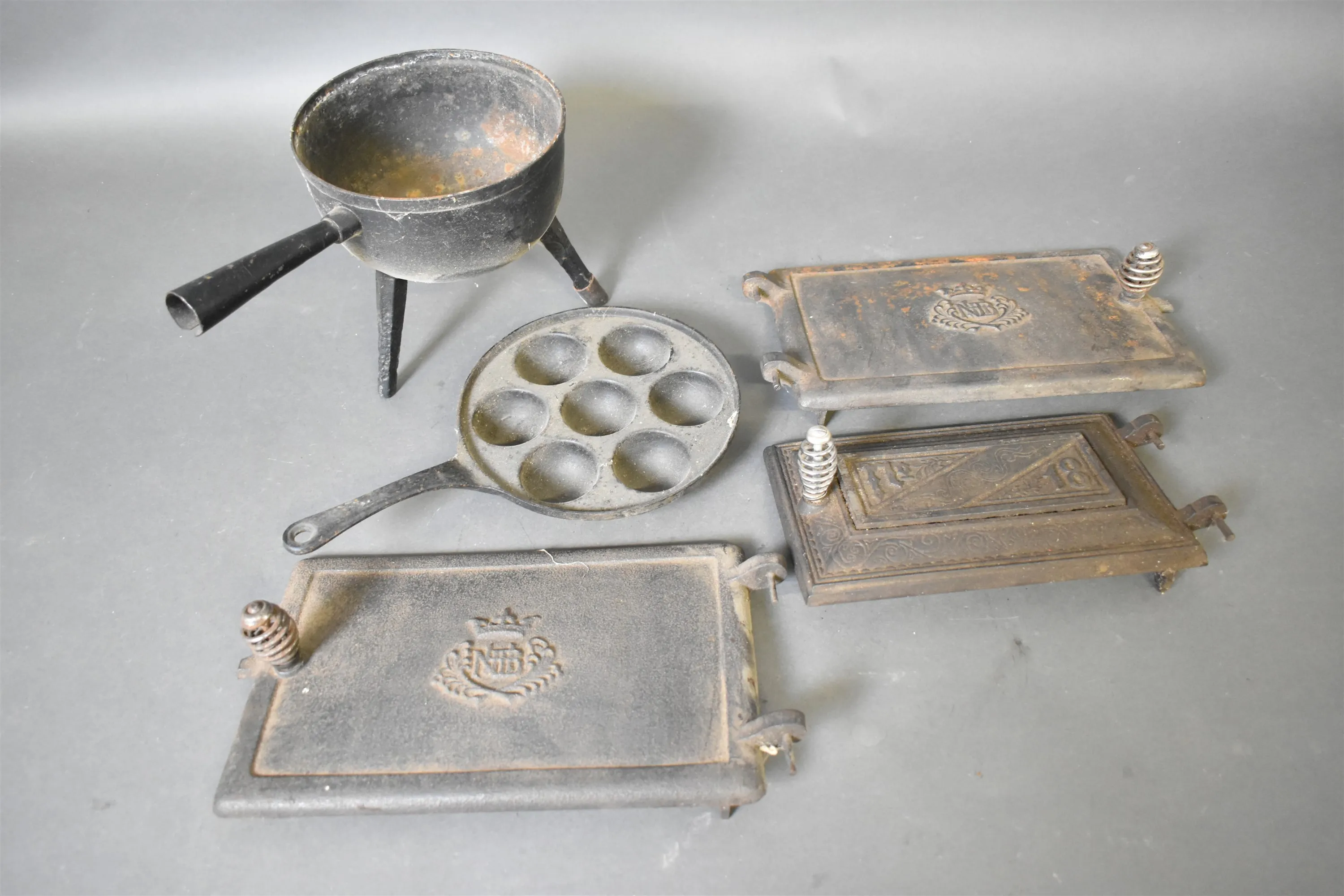 15863. Parti gjutjärnsföremål, högsta 18 cm