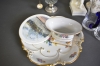 239. Parti bla "Sverigestolen", hattlåda med hattar och notställ, längsta mått på bild 83 cm