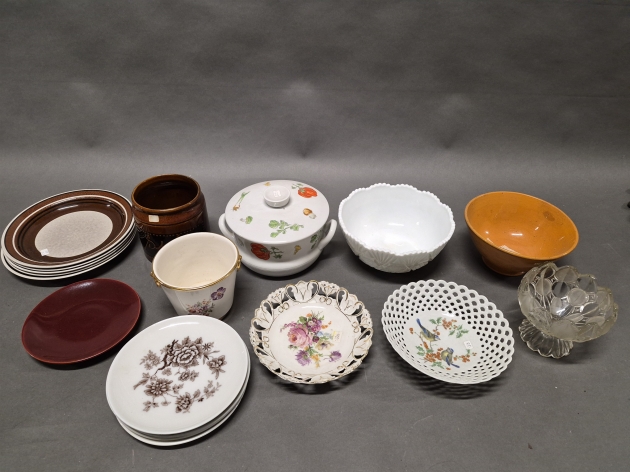 17622. Parti glas & porslin, terrin, högsta 16 cm