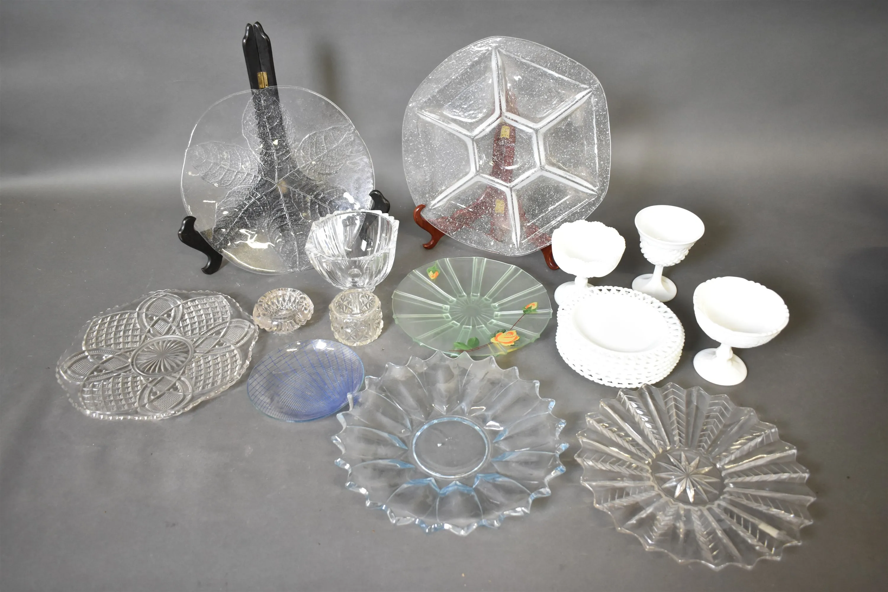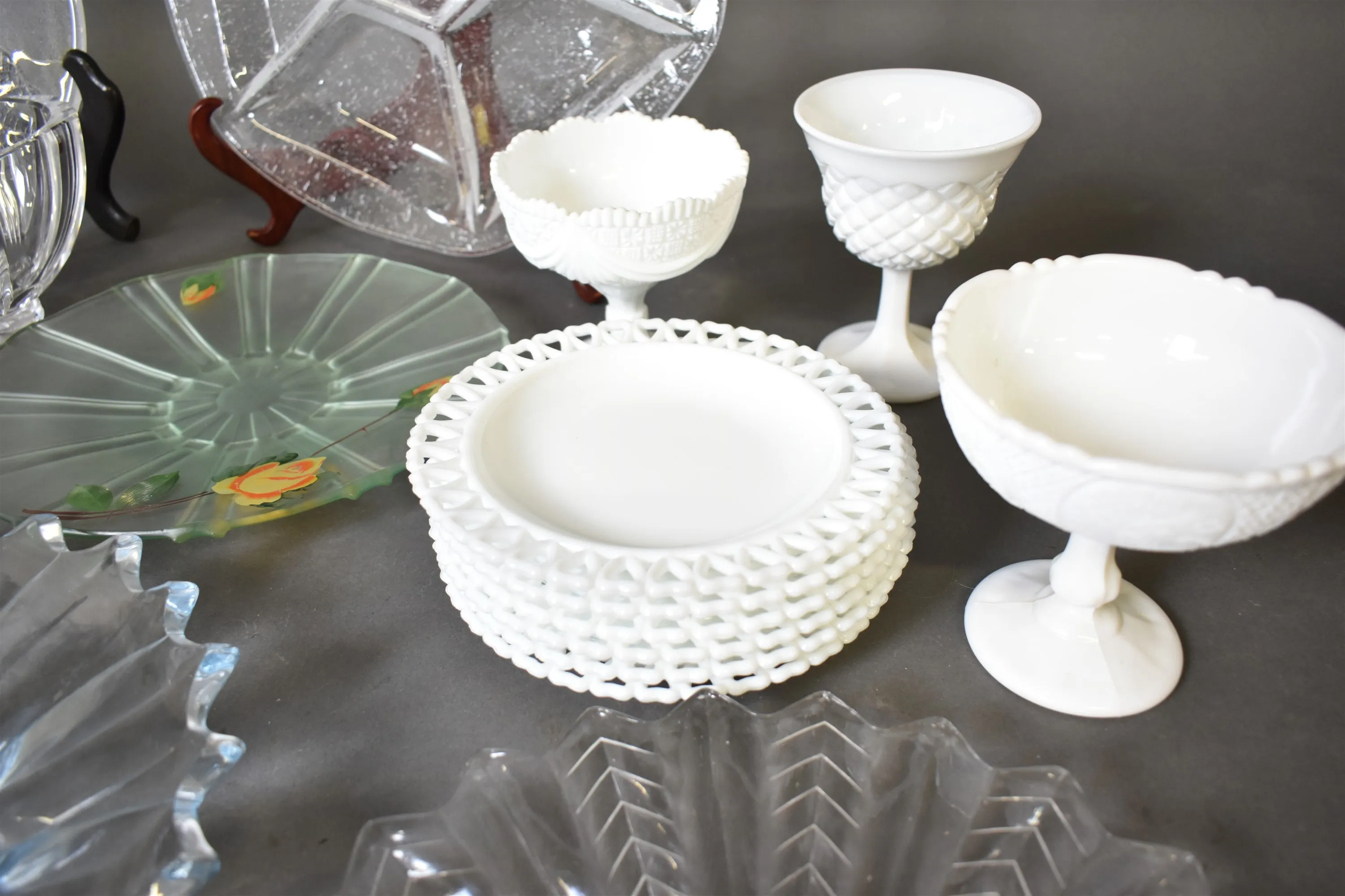 16072. Parti glas, bl.a fat assietter, största diameter 33 cm