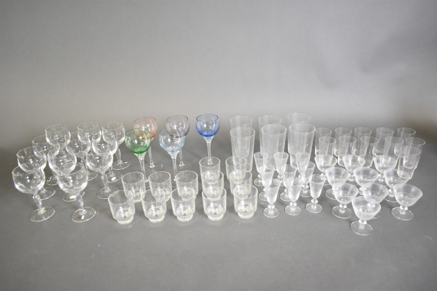 12102. Parti glas bl.a glasservis med skuren dekor, högsta höjd 20 cm