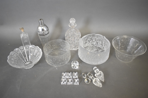 14082. Parti glas, bl.a karaff & skålar, Haldskålen har nagg högsta 23 cm