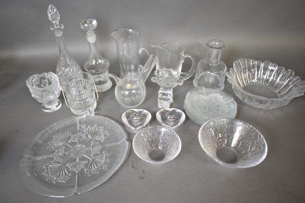 15804. Parti glas, bl.a karaffer, skålar, högsta 30 cm