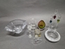 18974. Parti glas bl.a konstglasljusstakar, högsta 29 cm, stötskador på stora skålen & färgade vasen