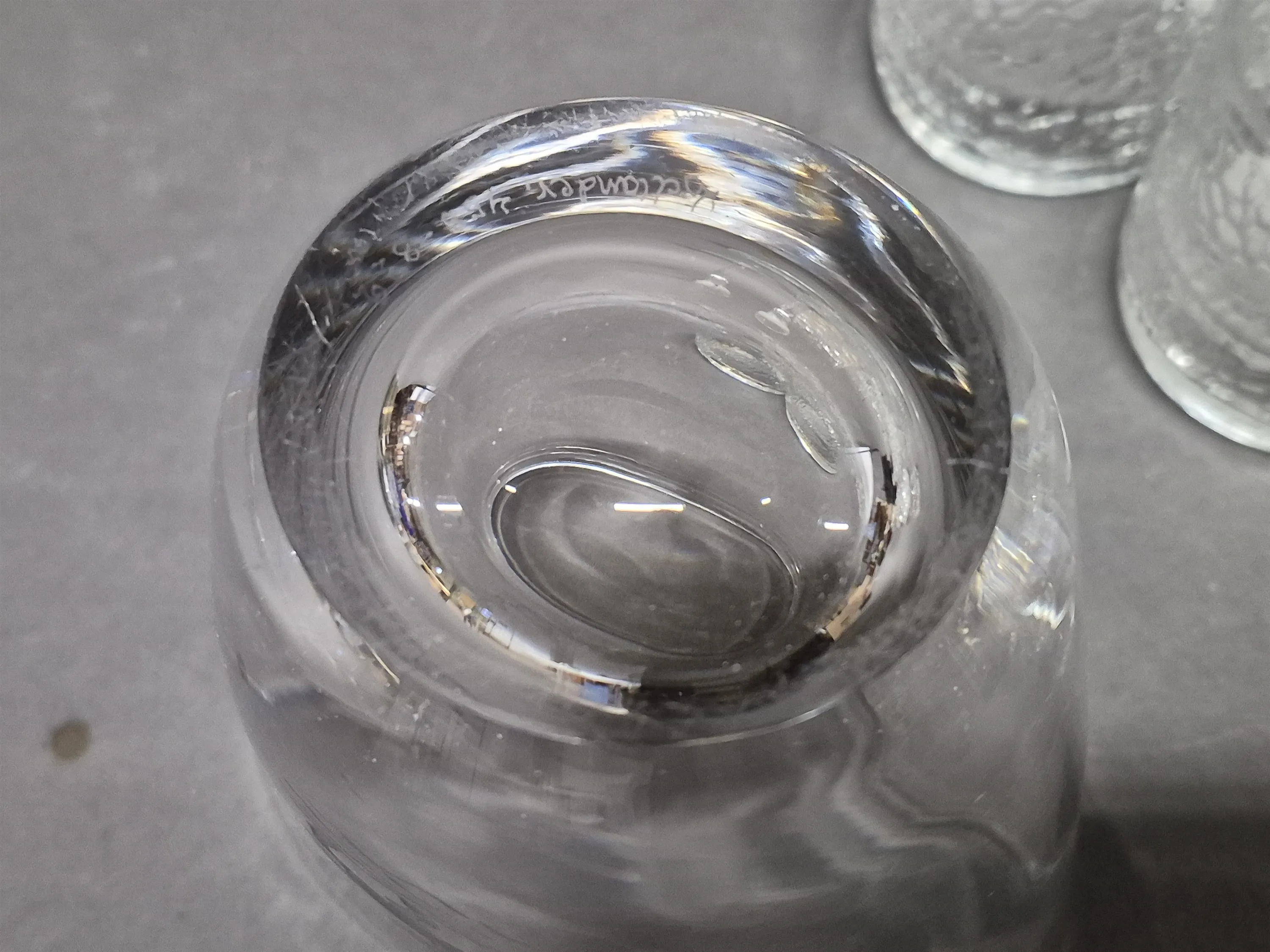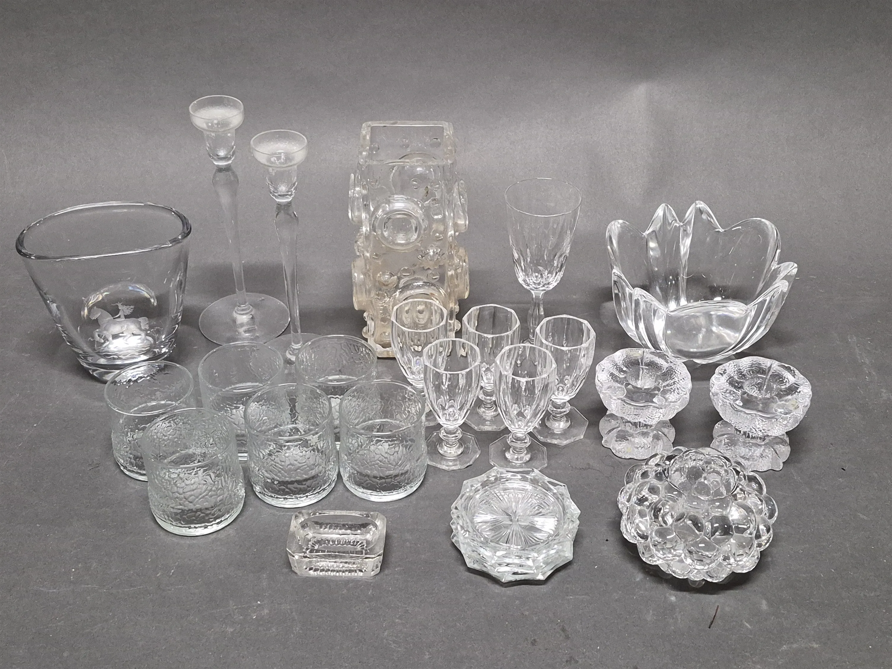 19373. Parti glas, bl.a ljusstakar & vas signerad Kjelander, högsta 22 cm