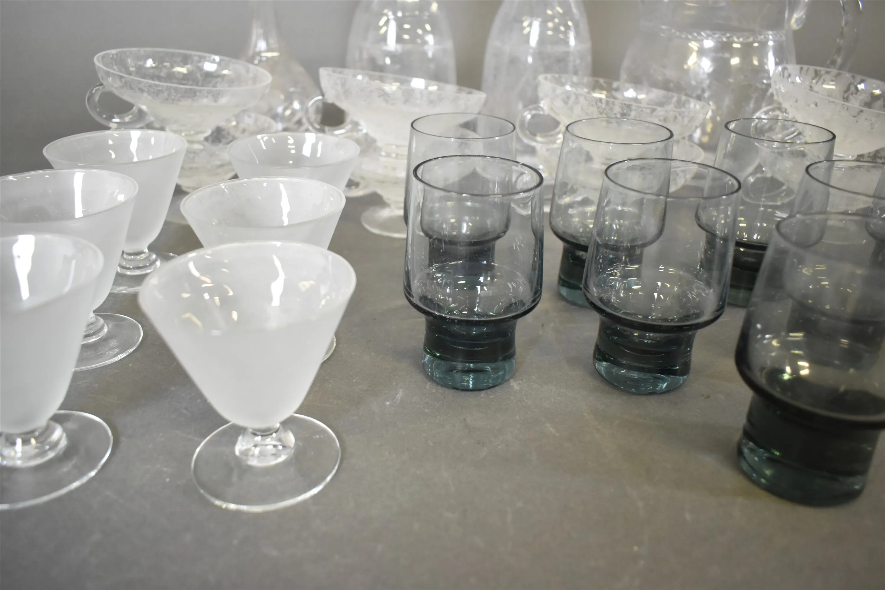 10505. Parti glas, bl.a parkaraffer höjd 24 cm, likörglas