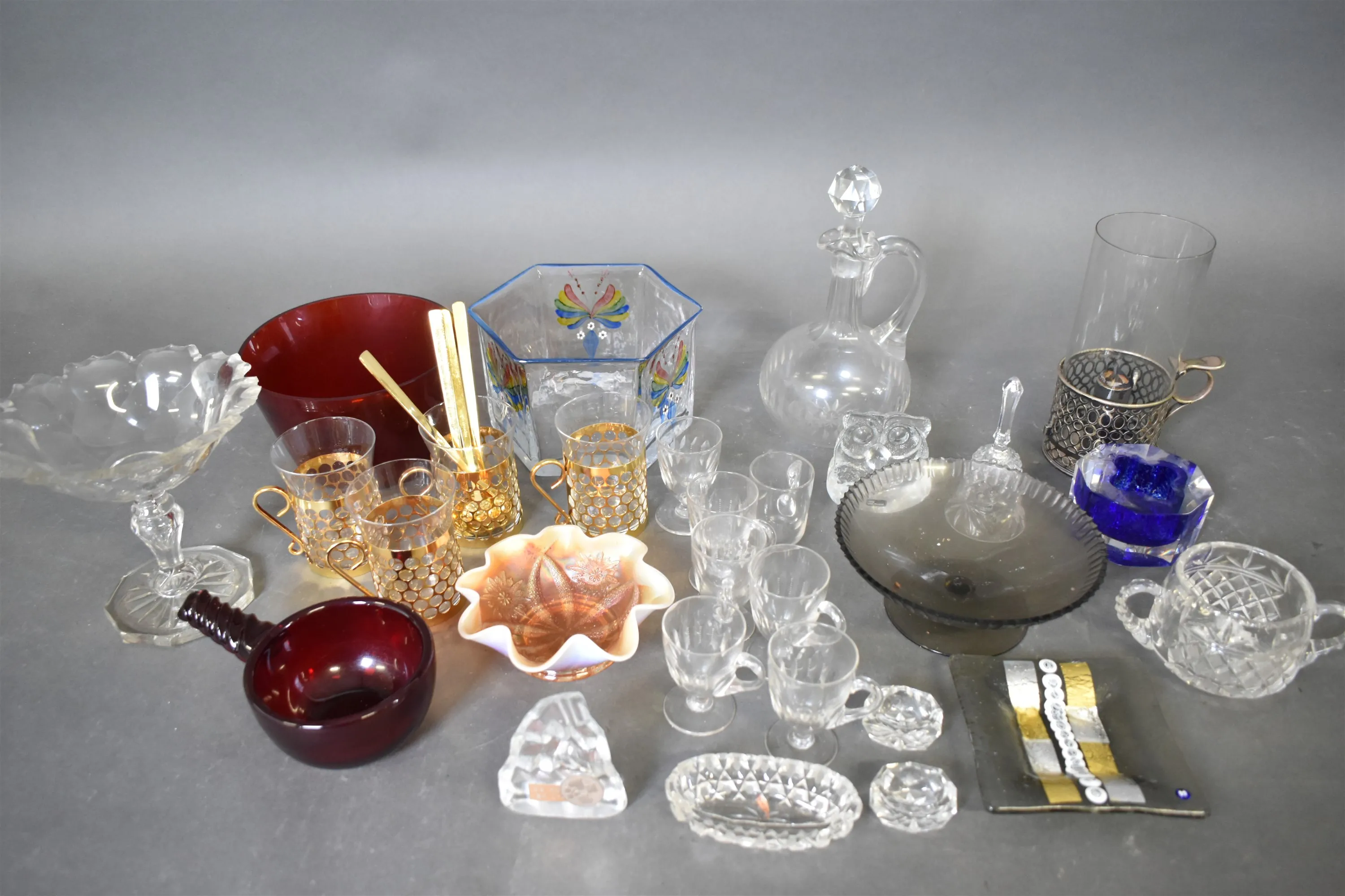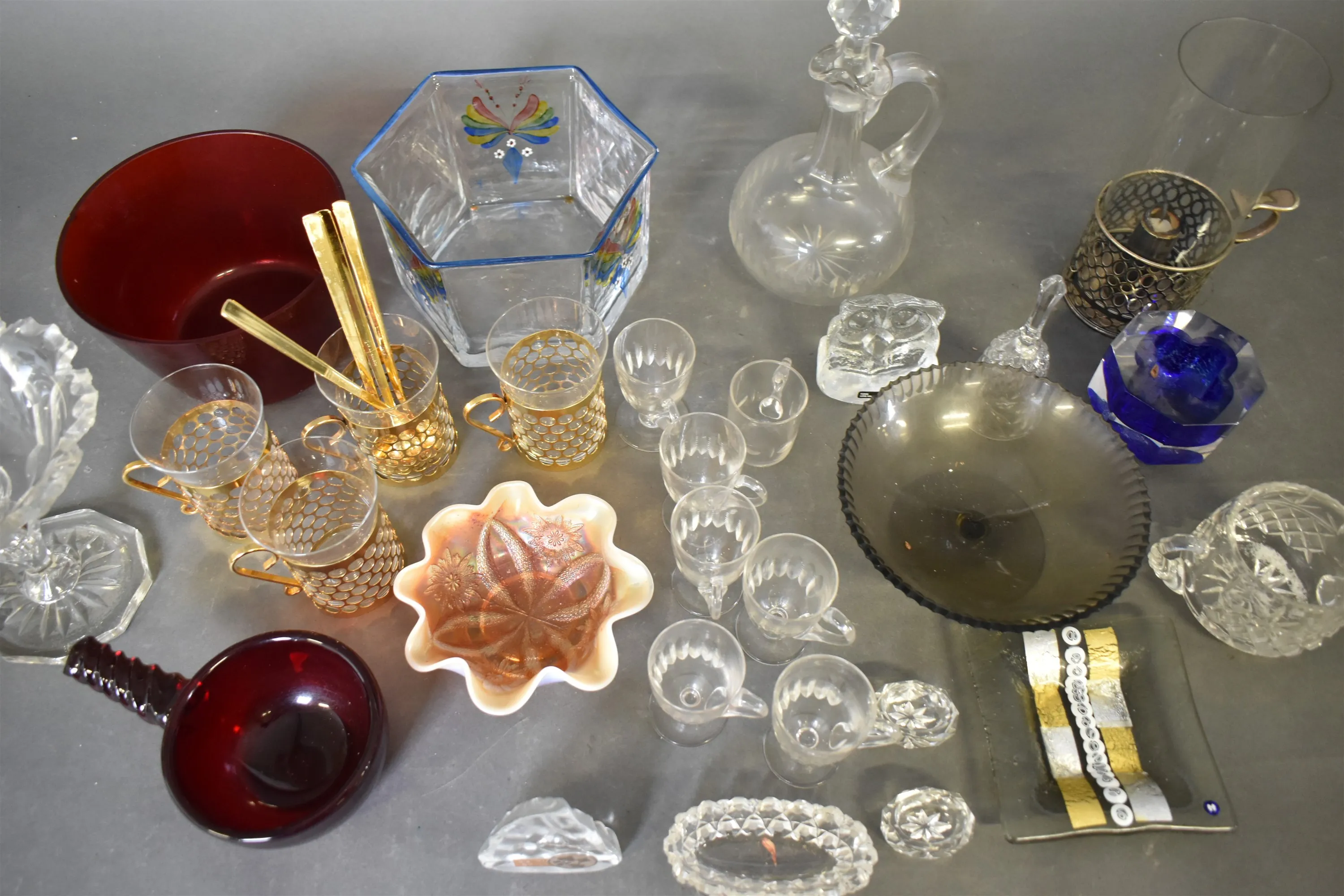 12121. Parti glas bl.a rödtonade skålar & karaff högsta 25 cm