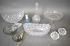 11550. Parti glas bl.a skål på fot, jardinjärer, högsta 34 cm