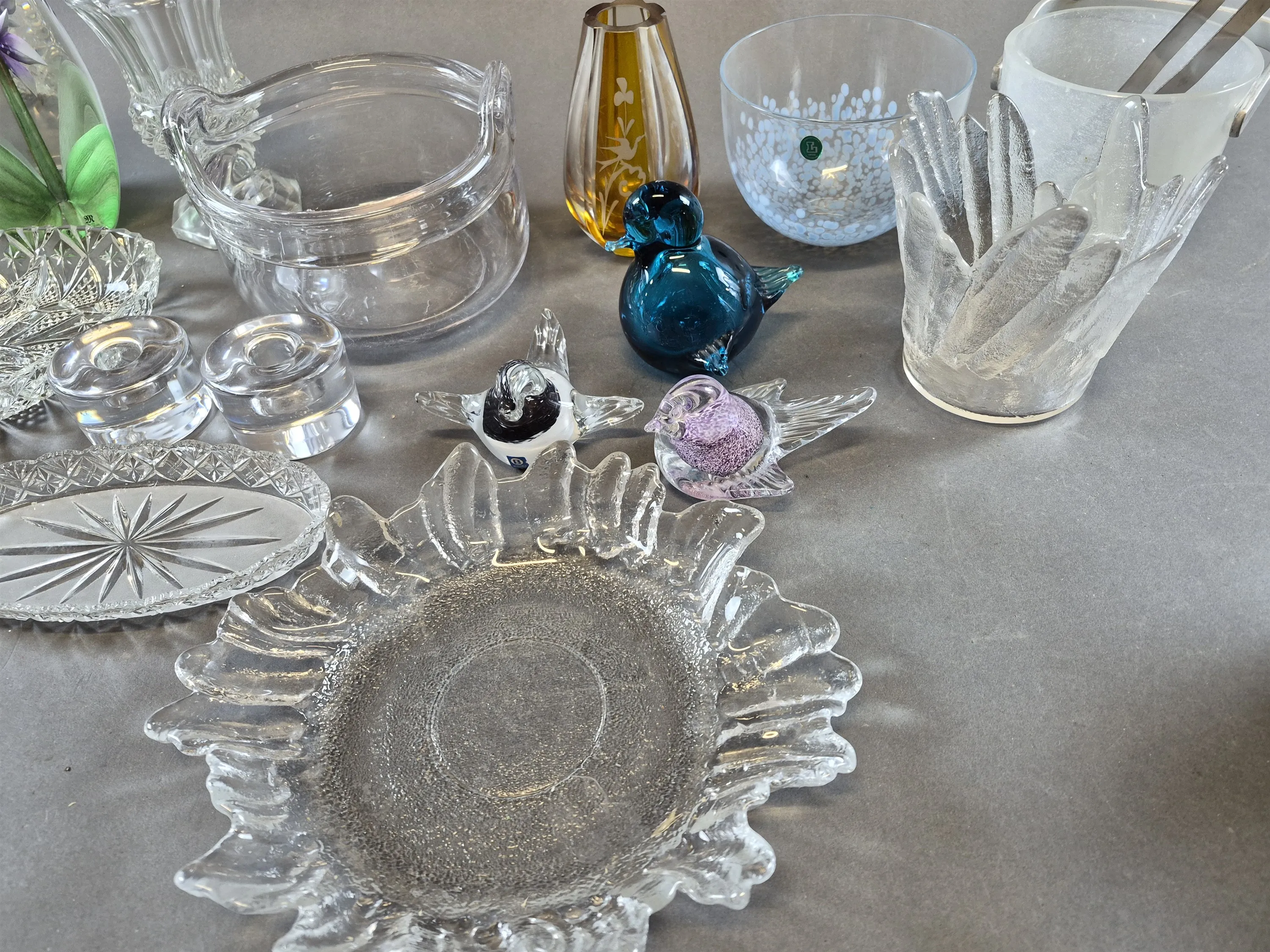 19791. Parti glas, bl.a skålar, vaser, konstglas orkidé har nagg högsta 29 cm